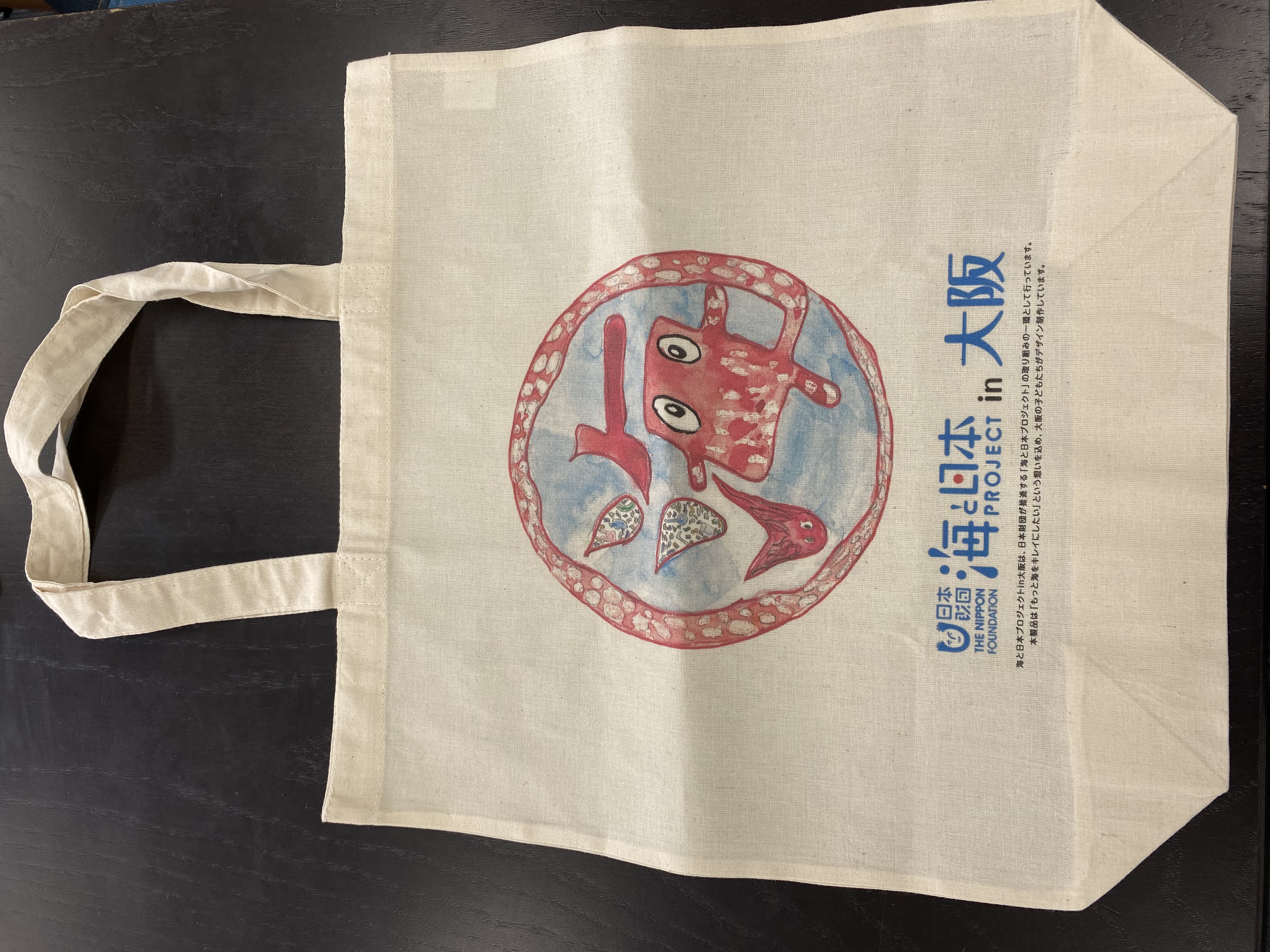 海と日本プロジェクトin大阪オリジナルイベント「魚庭のタコから学ぶ大阪湾のイマ」内にて参加者にエコバックのデザインを制作してもらい、その中からデザインを選定しエコバックとして実際に製品化。
