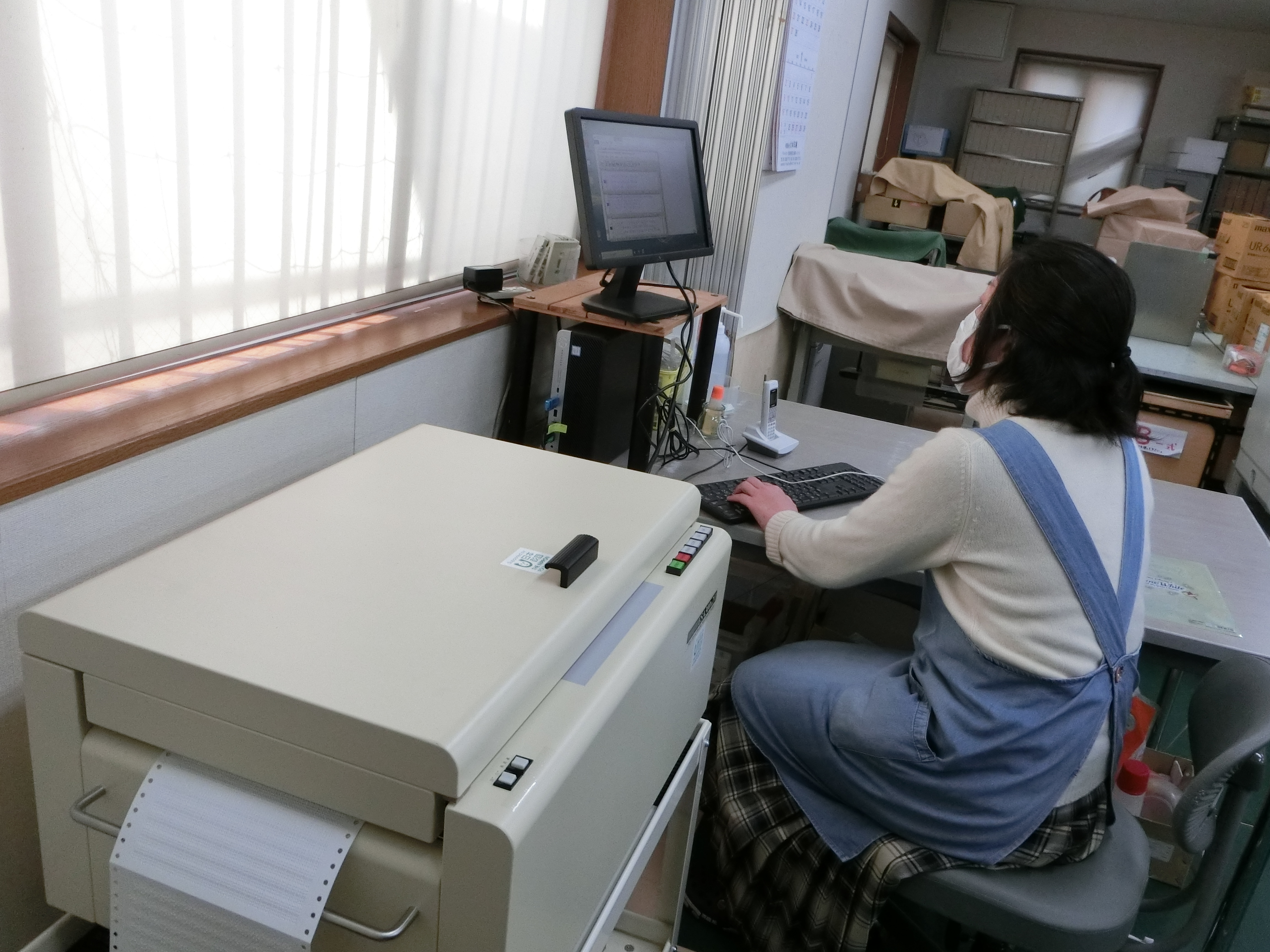 日本財団様より助成金を賜り、2021.12.9 に本会新館1階作業室に納品・設置された点字ラインプリンタ(ESA300エックス2)の写真です。この機器の整備により、今後約20年間、都内在住の視覚障害者の方々に「点字による情報提供」が継続して可能となりました。