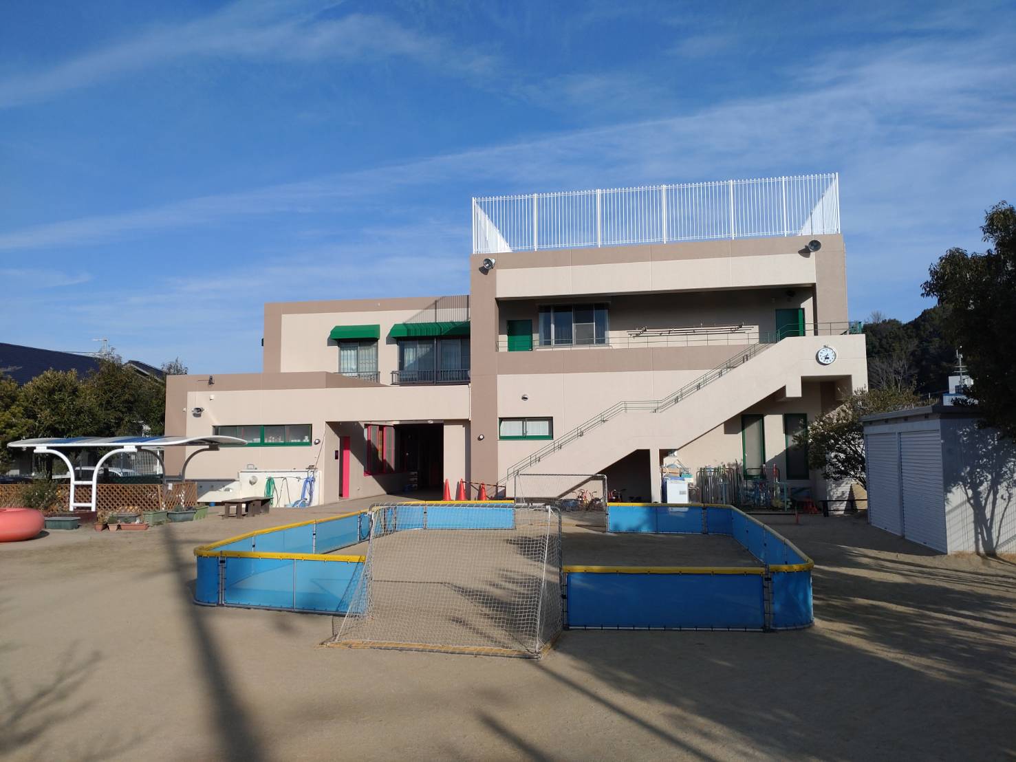 1.外壁塗装・防水改修工事 2.雨水タンク設置工事 3.電動オーニング(日よけ)設置工事 4.固定式テント設置工事 5.外壁シート貼仕上工事 6.窓手摺(落下防止)設置工事 7.屋上広場改修工事 8.2階ルーフバルコニー建具改修工事 9.屋上監視カメラ及びこれに伴うLAN設置工事 10.1階すのこ入替工事 11.1階園児用トイレ改修工事 施設名称 認定こども園 泉北若竹保育園 場 所 大阪府堺市南区豊田1261 延床面積 1,165.15㎡ 定 員 140名 |