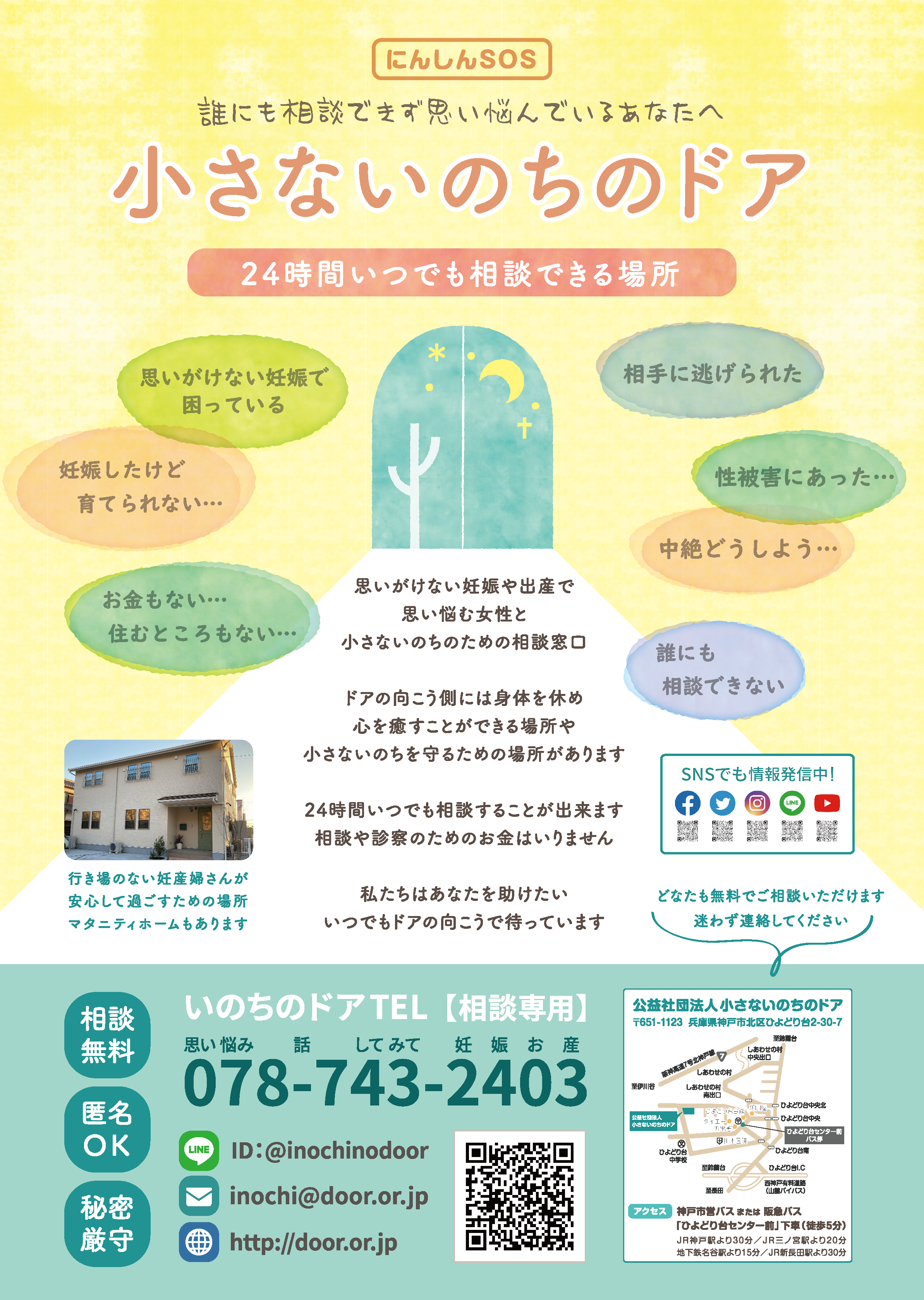 小さないのちのドアの活動をより多くの方々に知っていただくために、学校や病院などで掲示・配布していただくためのポスター。