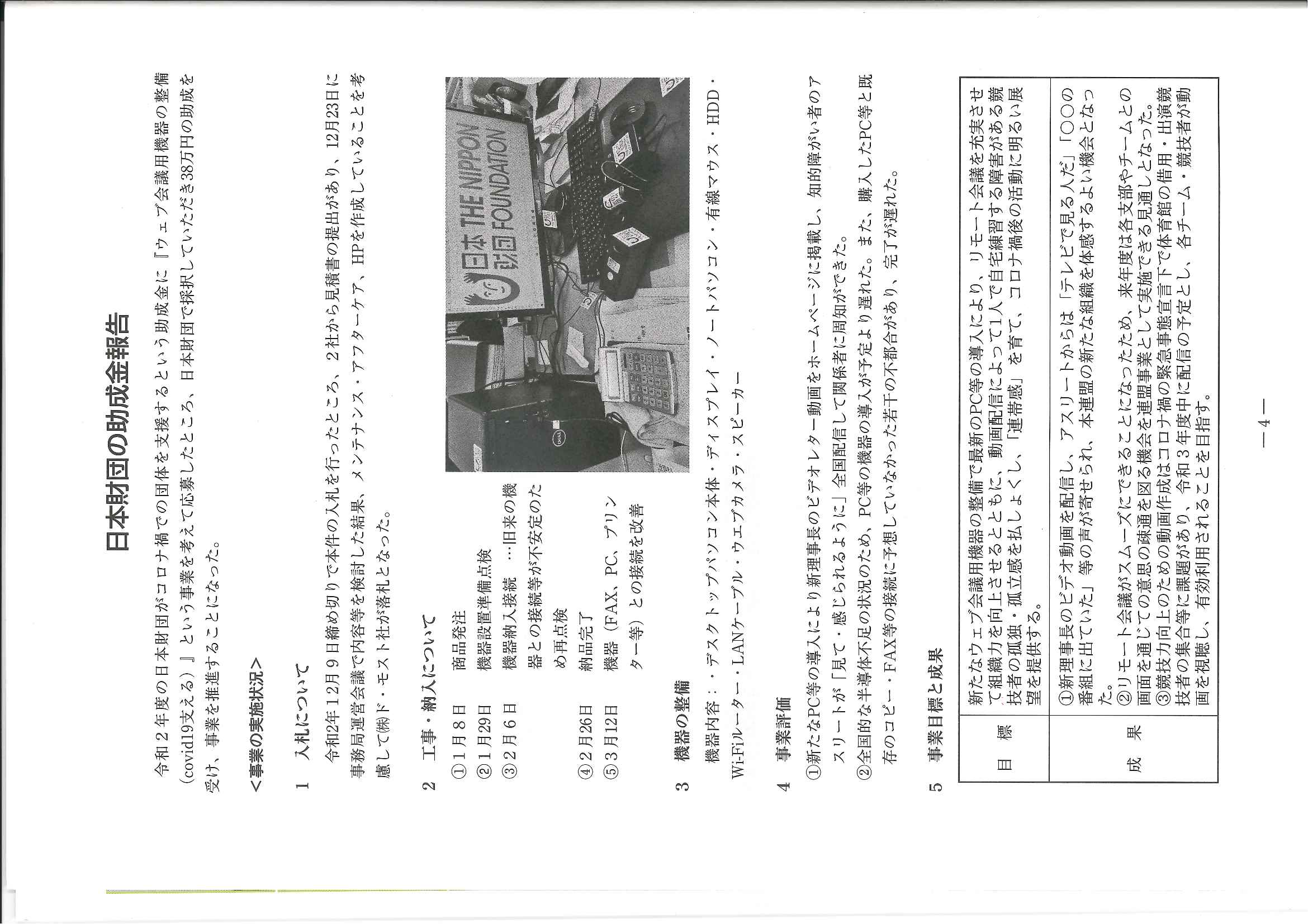 令和2年度の日本財団がコロナ禍での団体を支援するという助成金に『ウェブ会議用機器の整備(covid19支える)』という事業を考えて応募したところ、日本財団で採択していただき38万円の助成を受け、事業を推進した。