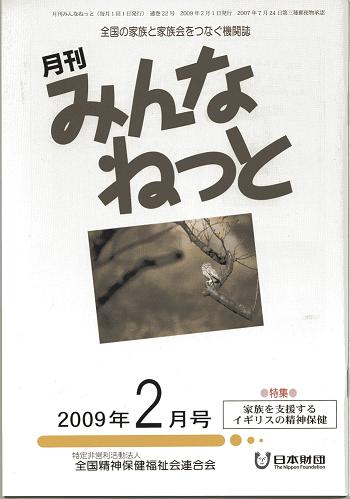 ■自立支援法見直しに関する報告書まとまる -社会保障審議会障害者部会- ■福祉サービスの軽減措置が延長される -主管課長会議- ■「市町村の相談支援事業をバックアップするしくみ」 地域自立支援協議会の運営についての全国連絡会議開催 お知らせしますみんなねっとのうごき ■長崎大会実行委員会開かれる 【特集】家族を支援するイギリスの精神保健 -家族・当事者の団体リシンク- お元気ですか?家族会 「岐阜市あけぼの会」(岐阜県) 街の診療所からのお便り 連載22/増本茂樹 「・・・・障害年金?生活保護?自立支援?・・・・」 みんなねっと東京大会特別講演 「これからの精神障害者福祉」/堂本暁子(千葉県知事) 基礎から学ぶ統合失調症 【講座11】 「社会に正しく理解してもらう-偏見をなくす-」/吉田尚史 みんなねっとのわ 読者の皆さまからの投稿 ・「みんなねっと」への感想 ・日常生活のこと ・イラスト、詩 など |