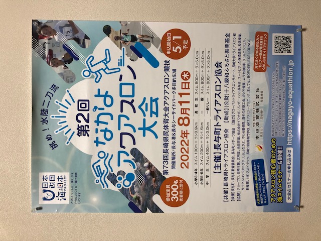 2022年度第2回ながよアクアアスロン大会ポスターです。長崎県内のスイミングクラブ、スポーツクラブ、公営プールなどに掲示をお願いしました。