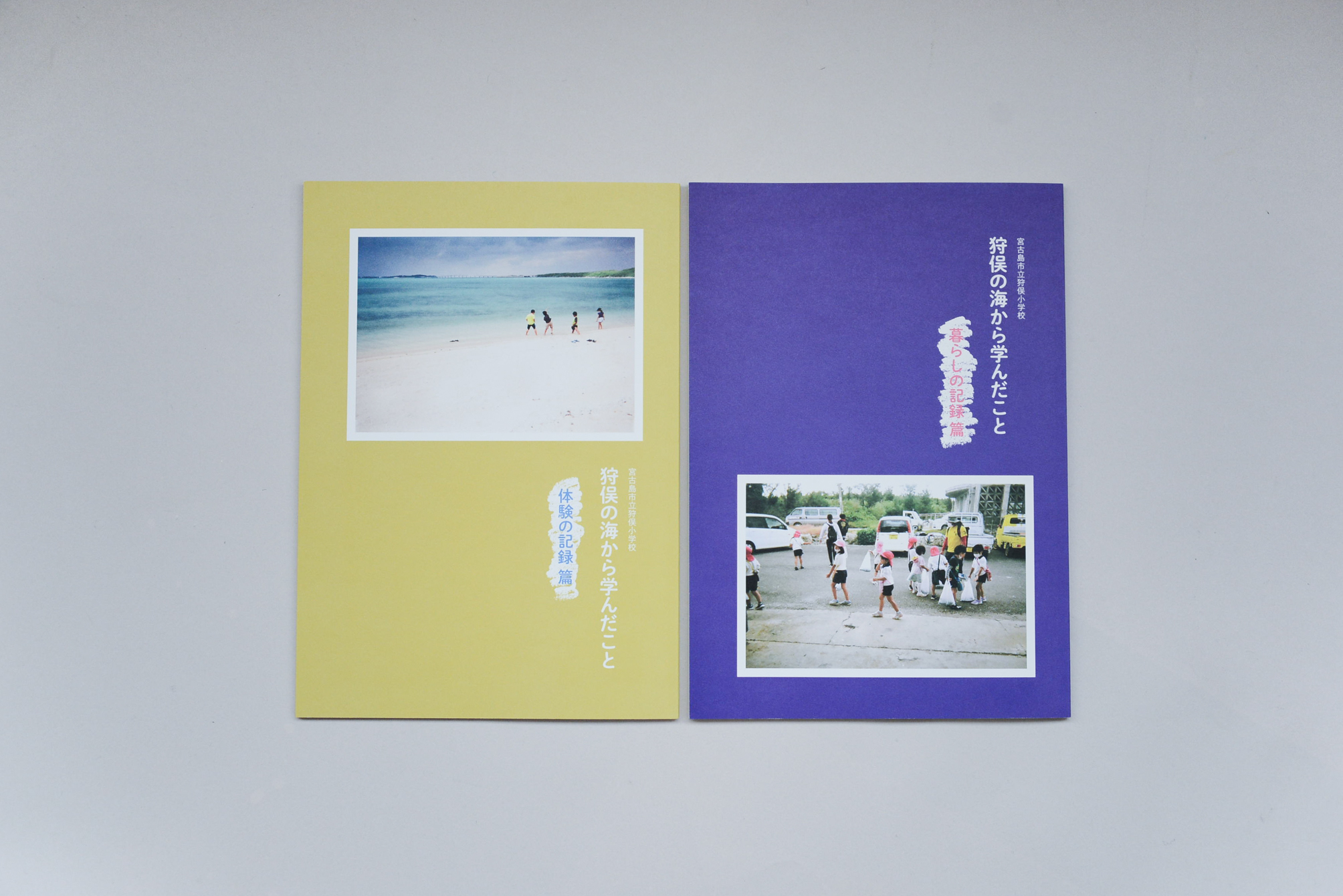 『狩俣の海から学んだこと』は、「体験の記録篇」と「暮らしの記録篇」の二つの冊子から成っています。 実際にウミガメの放流や釣り、漁を体験したり、漁師さんたちへインタビューをしたり、狩俣のお気に入りを写真に撮ったり。子どもたちは1年間を通して狩俣の海にふれ、豊かな島の魅力を楽しく学んでいきました。これら「海プロジェクト」の様々な活動が紙面に詰まっています。 |