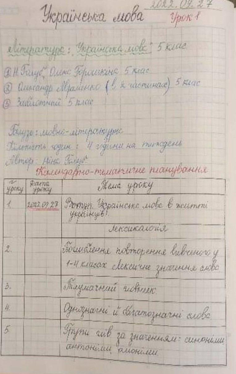 このテキストはメドヴィドワ氏が作成し、ウクライナ語のより深い学び方についての詳細が記述されている。 上級生向け及びよりステップアップした内容として、マンツーマンの授業を行い、 文字と文章を自らの手で書き写すことに慣れることで、 ウクライナ語の基礎と応用を固めることに専念した授業となっている。 |