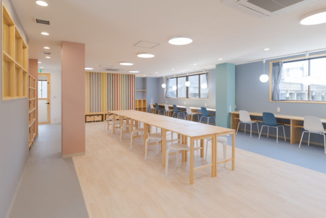 工事内容:木工事、電気工事、空調設備工事、設備配管工事、弱電工事、サッシ入れ替え工事、その他 施設名称:えがおの架け橋 面積:総面積約198m2、46m2(調理室)、56m2(子ども食堂・カフェスペース)、71.2m2(多目的室2階)、16m2(相談室) 構造:鉄筋コンクリート造 施設概要:子ども食堂・食事・交流・キッチン・相談室・トイレ、厨房など 定員:子ども15~20名 |