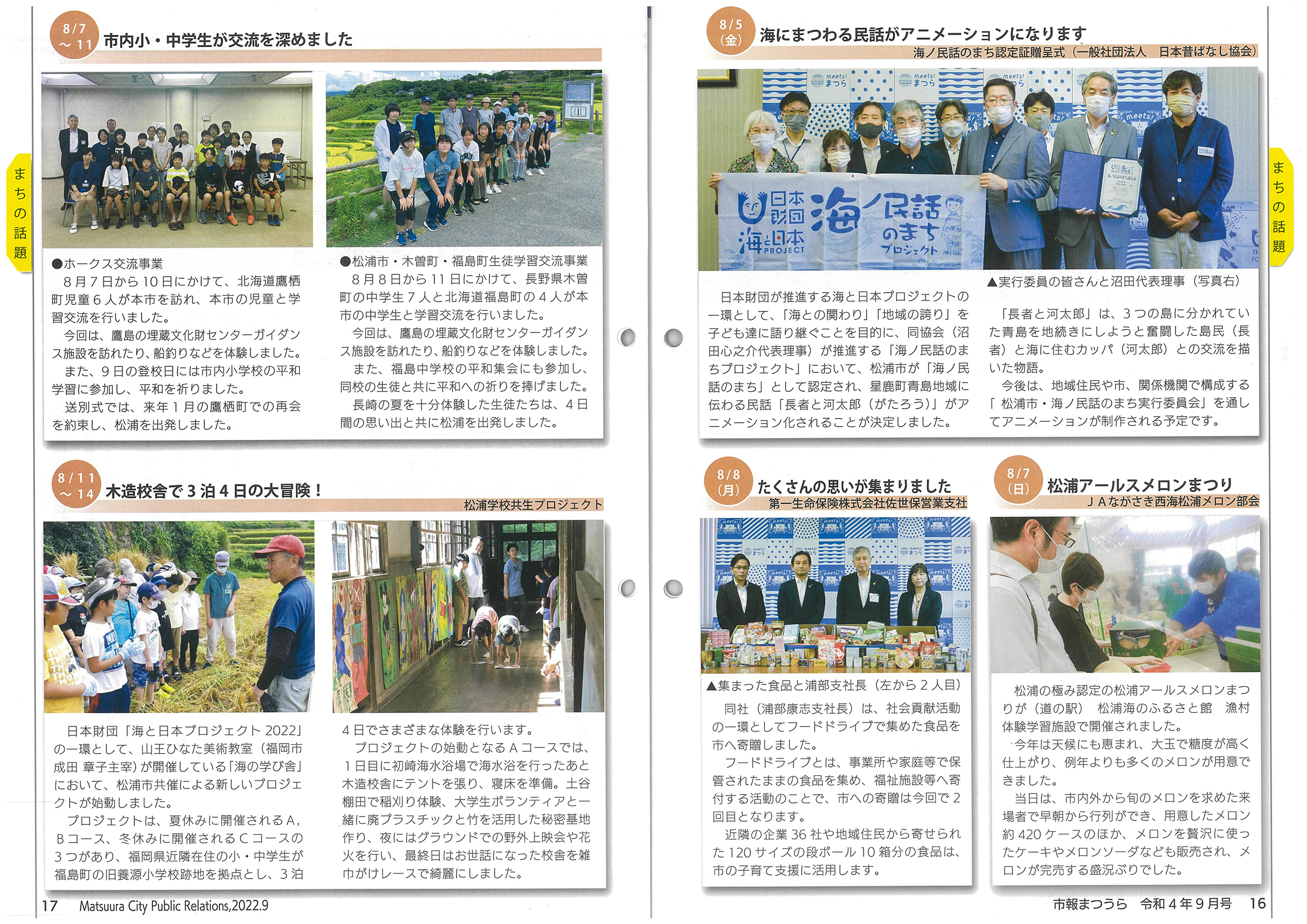 2022年度に実施した海の学び舎(海と日本2022)内の体験イベント「松浦学校共生プロジェクト」を松浦市役所だよりにて取材掲載。