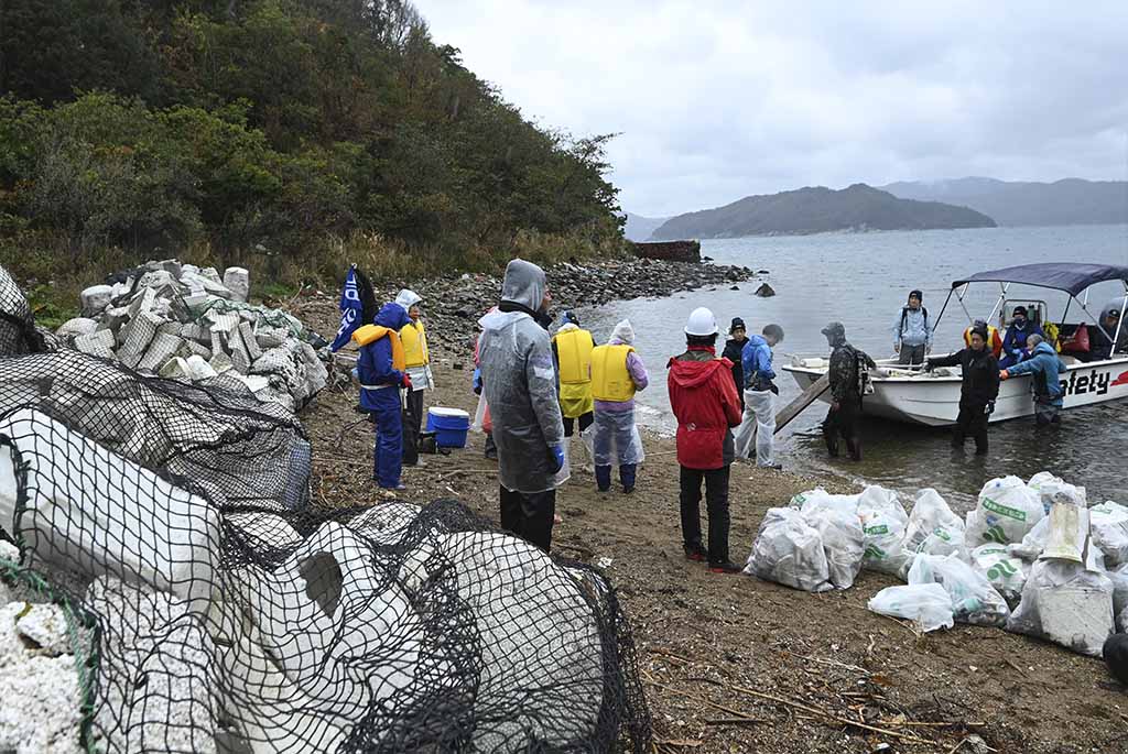 2022年度 海と日本プロジェクト 日本財団助成金 回収困難場所の大量漂着ゴミを船を使い拾う。3