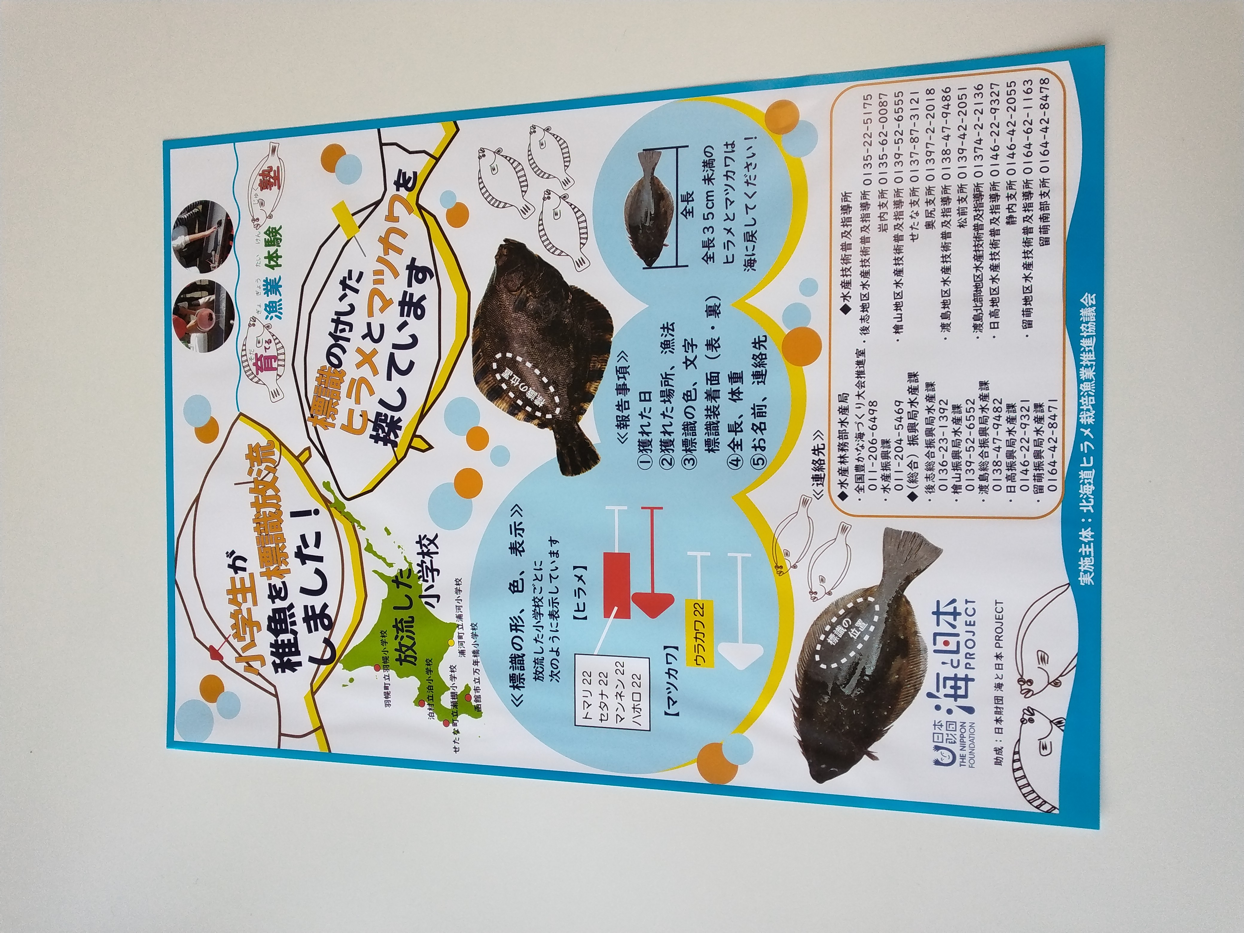 北海道内の小学校5校において、地域でつくり育てる漁業に取り組まれている魚(ヒラメとマツカワ)を実際に飼育、放流、試食するといった実体験を中心とした、つくり育てる漁業の水産プログラム「育てる漁業体験塾」を行いました。その活動を行うにあたり、次の①~⑤を作成しました。