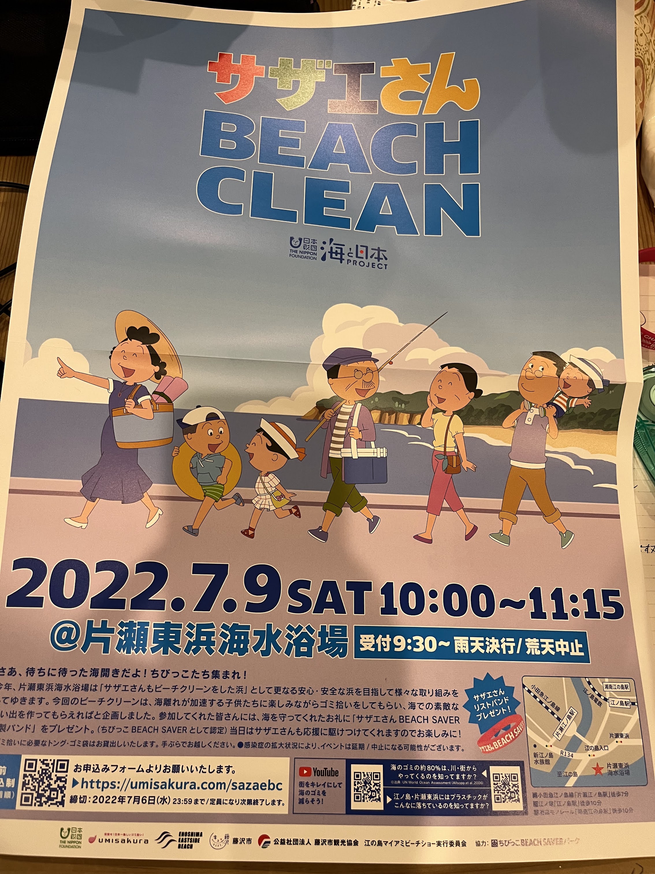2022年度海を学ぶ公園(CFB・海と日本2022)ちびっこBEACH SAVER パーク サザエさんビーチクリーンチラシA3二つ折り