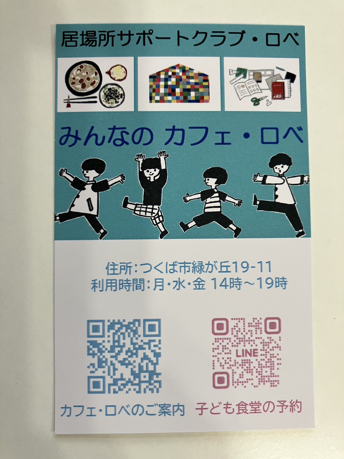 みんなのカフェ・ロベ 2023年度活動写真、地域イベントチラシ、ショップカード インスタ
