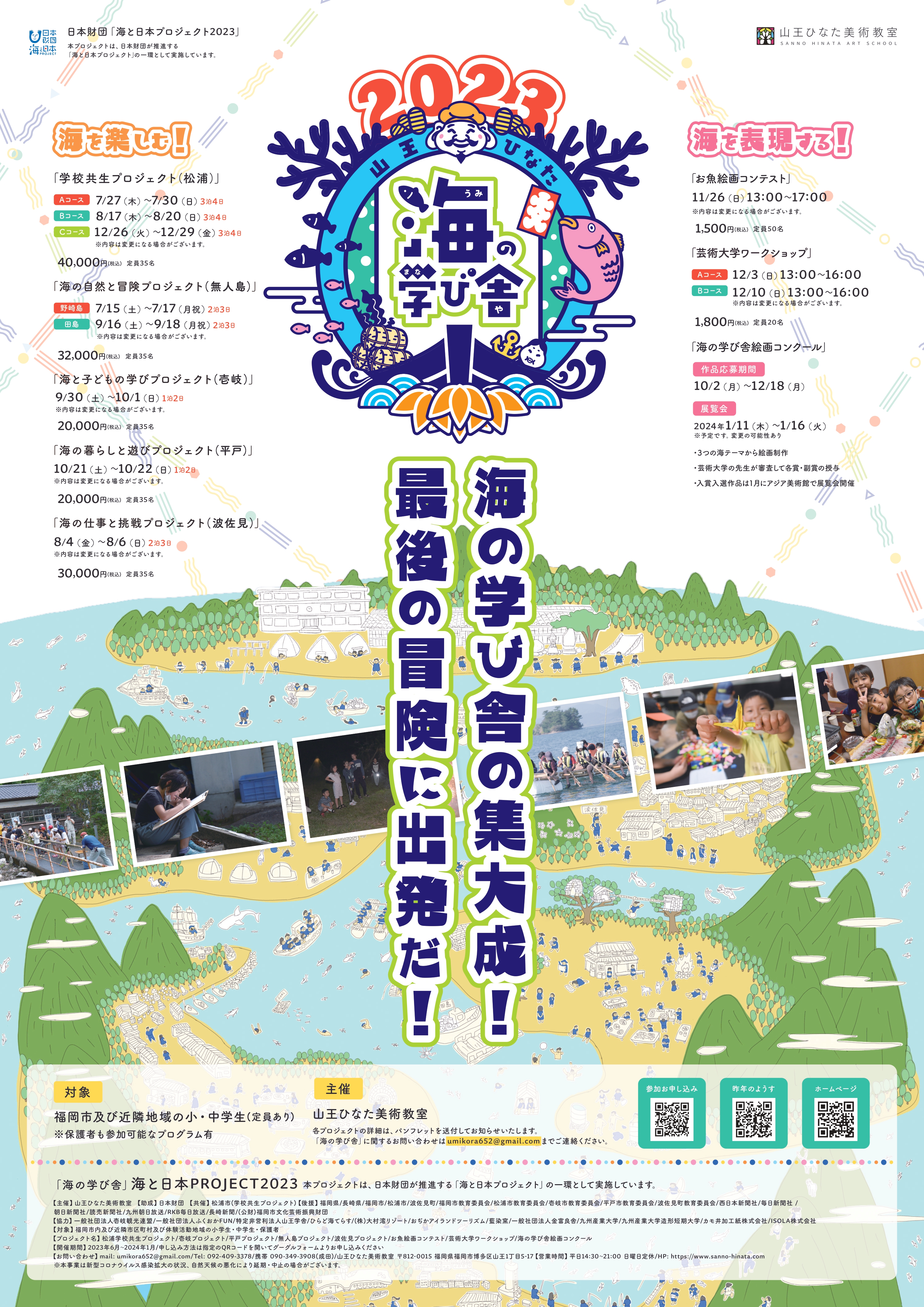 2023年度に事業実施した「海の学び舎(海と日本PROJECT2023)」の事業告知のためのポスター。B2サイズで100枚製作。事業案内地域の学校や公的機関、各事業地に掲示。