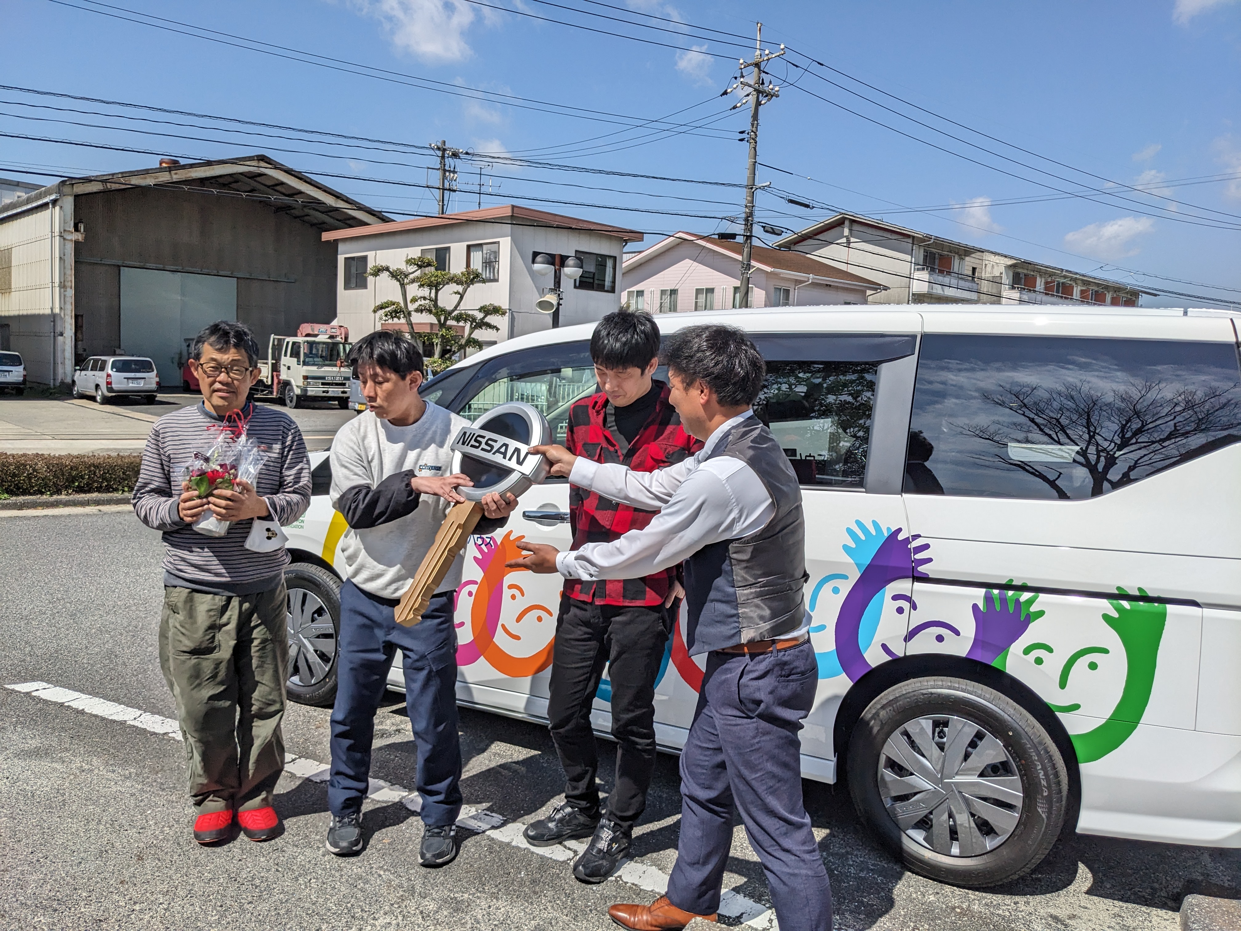 これまでにも、貴財団から頂いた送迎者車により、ご利用者の送迎ニーズに応えて来ました。 今回の送迎車も4月から開設されるグループホームや在宅利用者の送迎ニーズに応えるために、安定した快適なサービスを提供させていただきます。 |