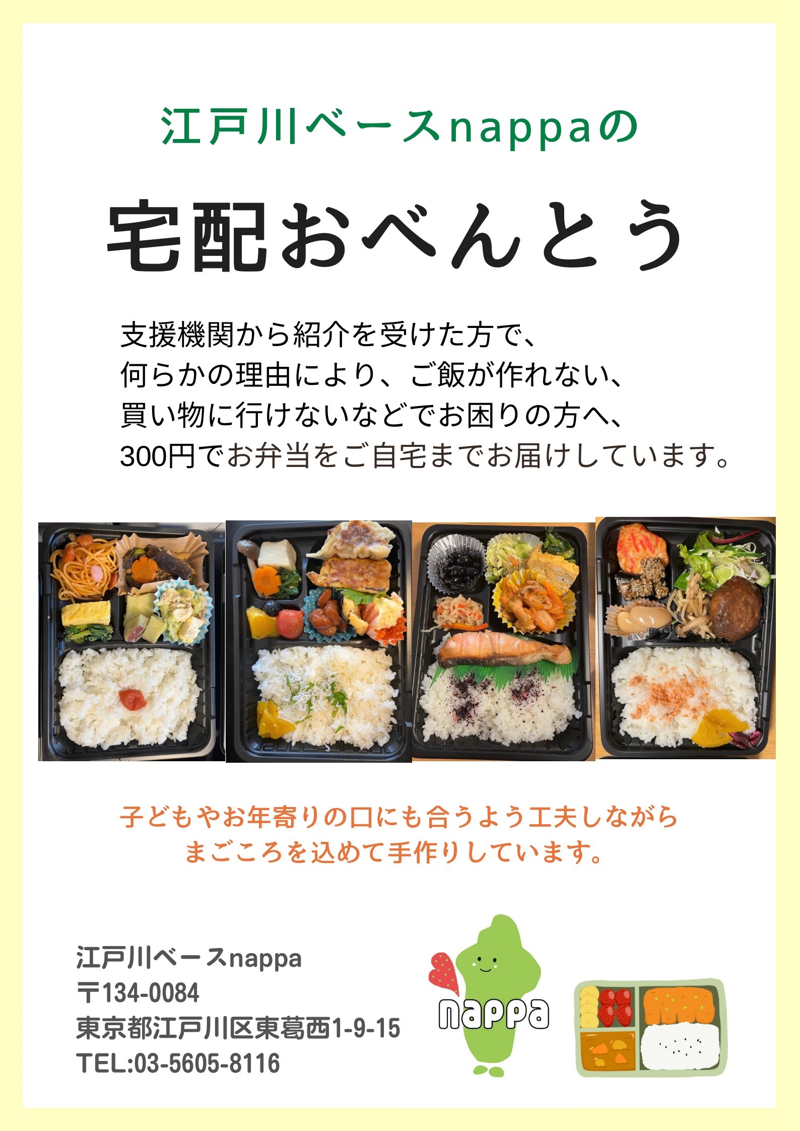 nappaリーフレット nappa deごはんチラシ(春バージョン) お弁当宅配 日本語・英語で遊ぼう nappaからのおたより(冬)