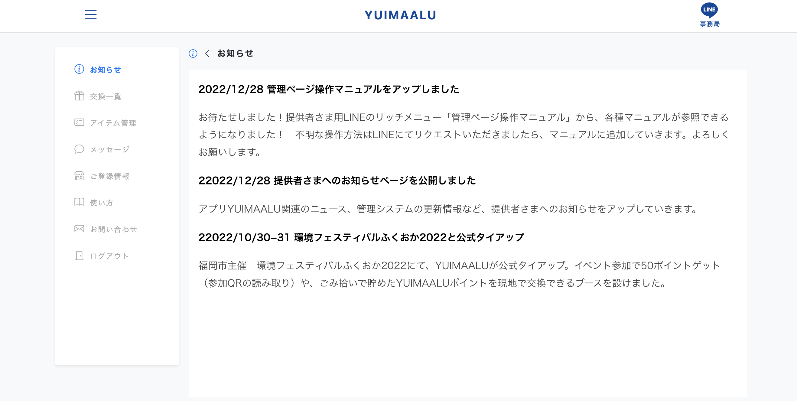 2023年度 ごみひろいポイ活アプリ【YUIMAALU】管理ページ(提供者用)