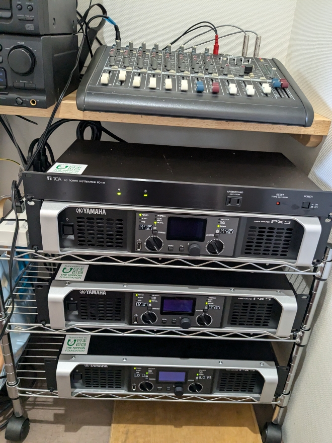 □音響機器設備(パワ-アンプ・コンパクトアレイスピーカー・サブウ-ハ-)