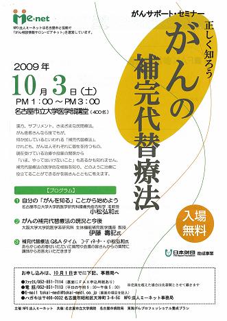 2009年10月3日開催 がんの補完代替療法セミナーチラシ