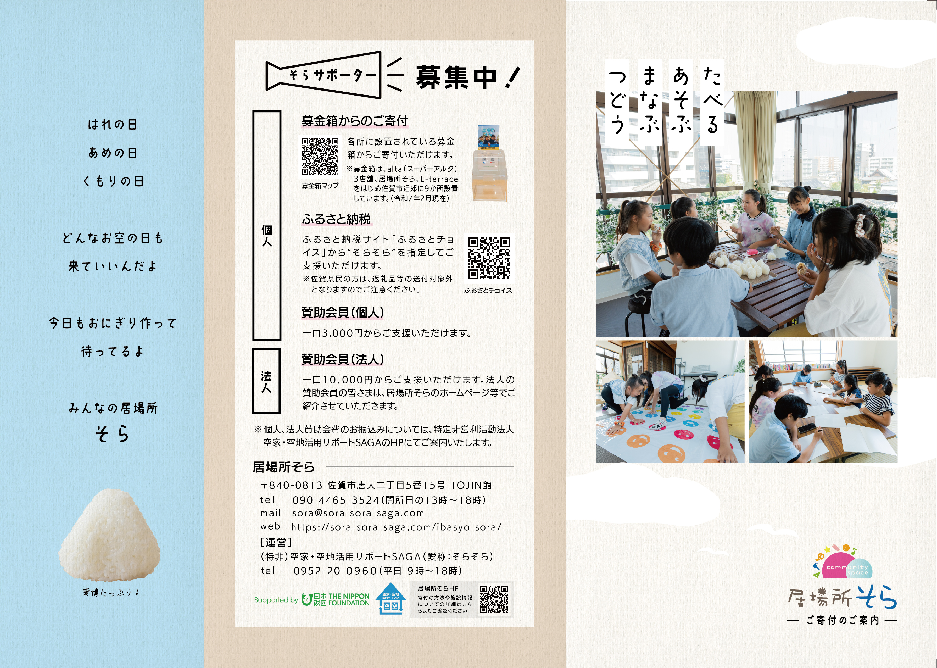 子ども第三の居場所 居場所そらの拠点紹介と寄付訴求のためのリーフレット