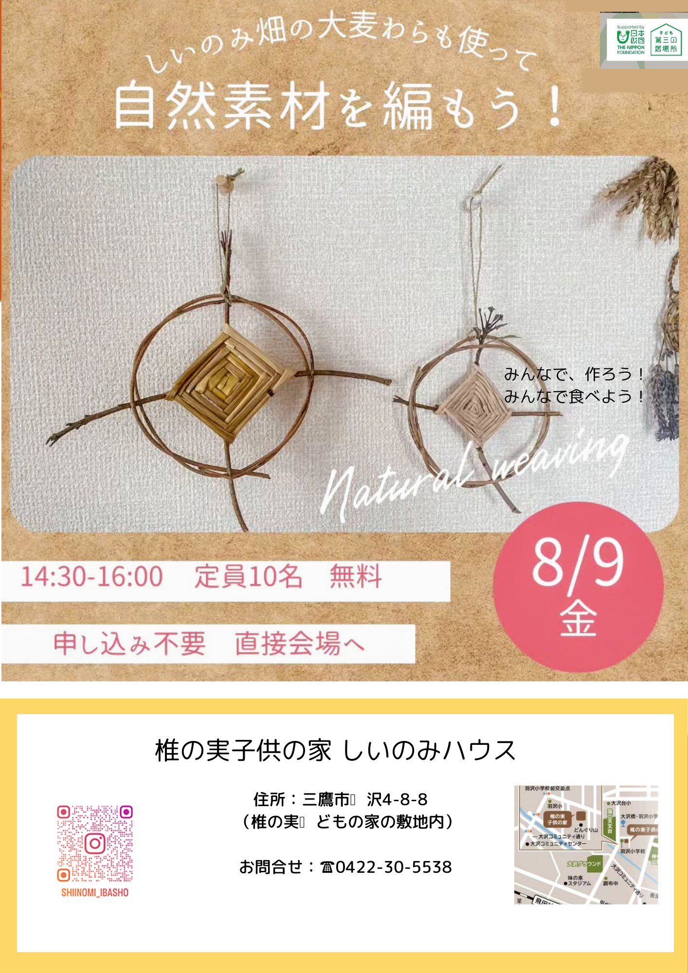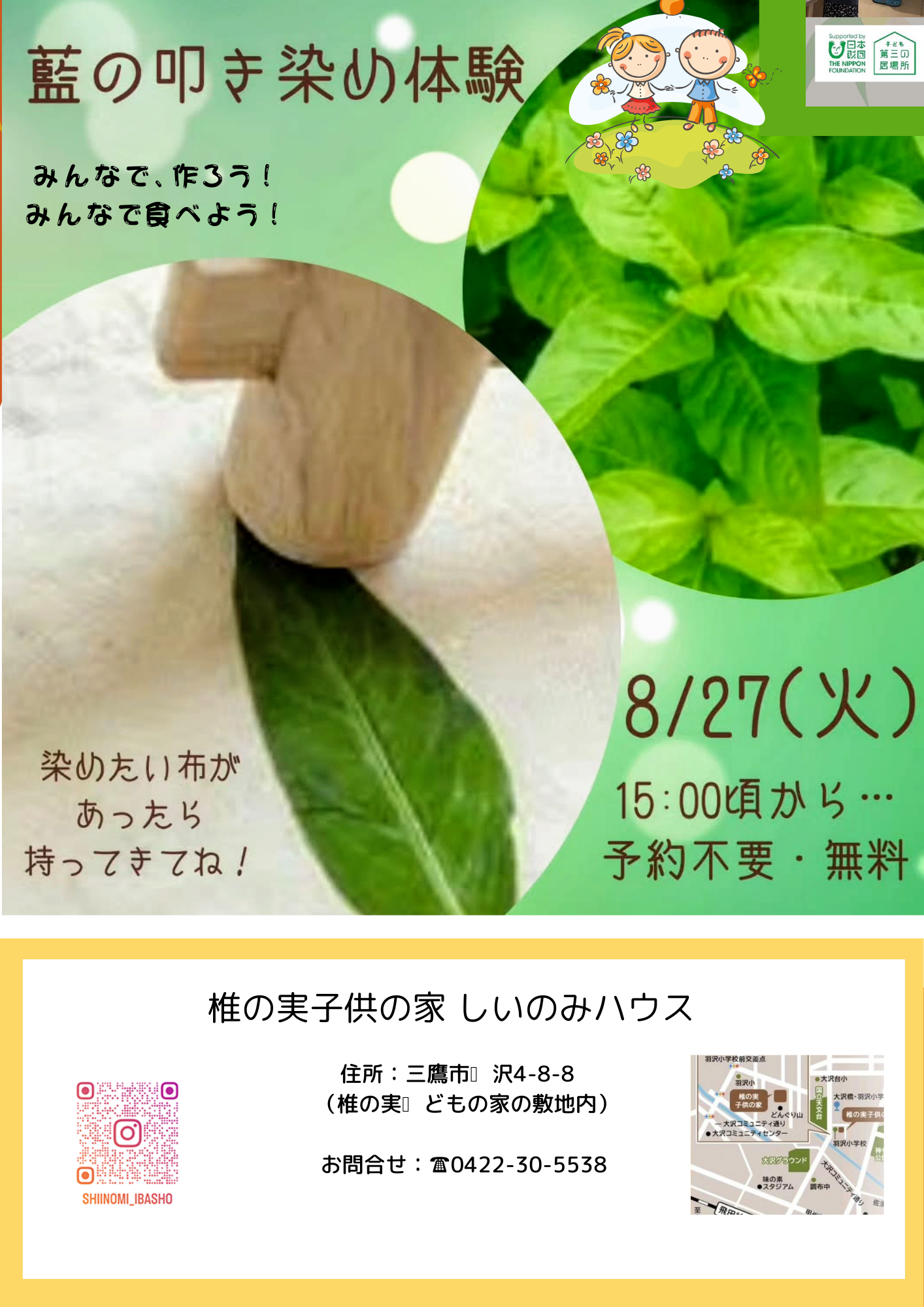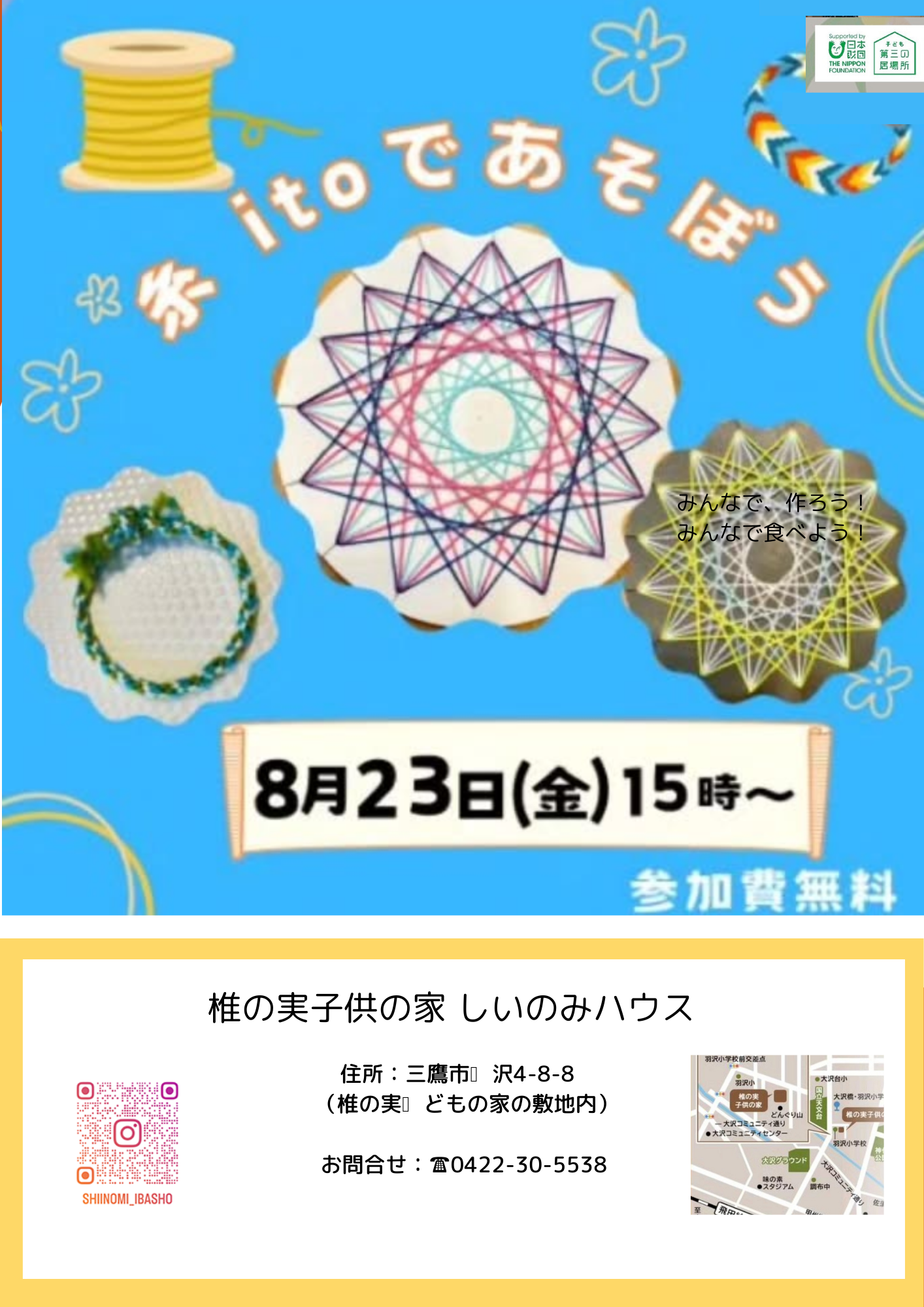 2024年度椎の実子供の家地域交流スペース しいのみハウス 子どもの居場所作り体験活動 チラシ・ポスター等