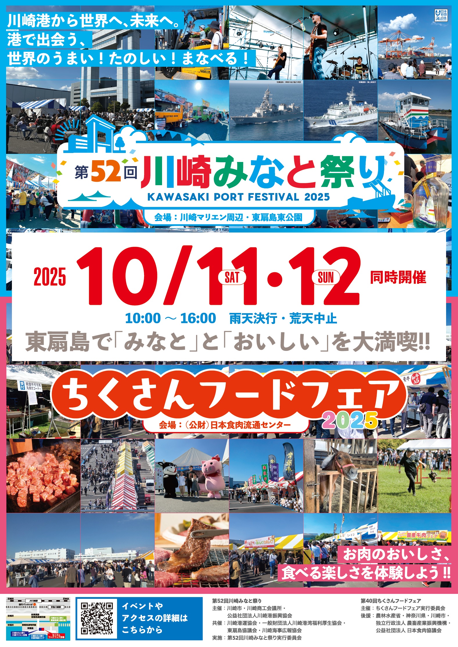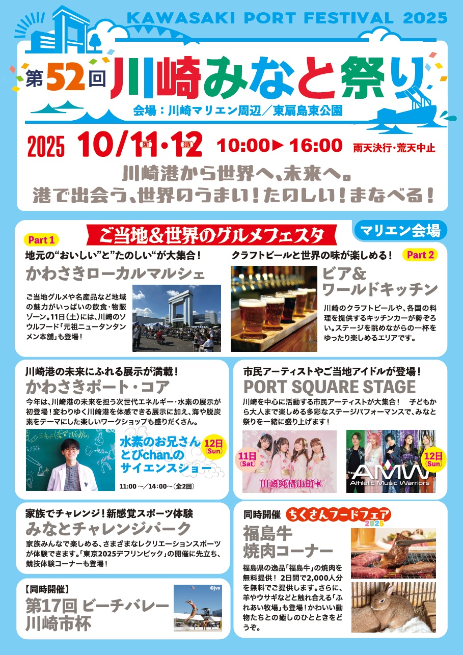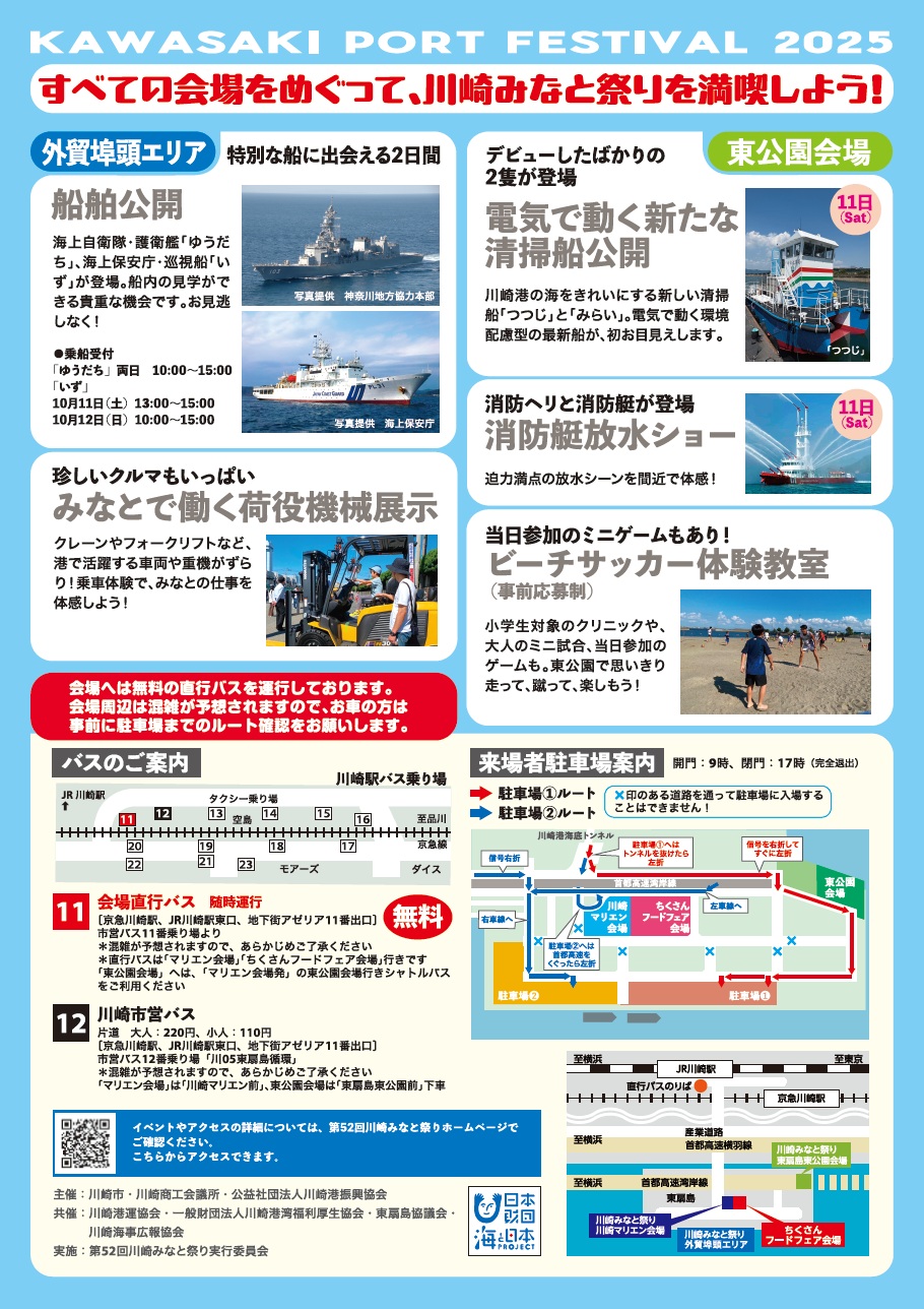 2025年度「川崎の海と港」世界に繋がる魅力発見プロジェクト(川崎みなと祭り)(海と日本2025)A4チラシ・会場マップ