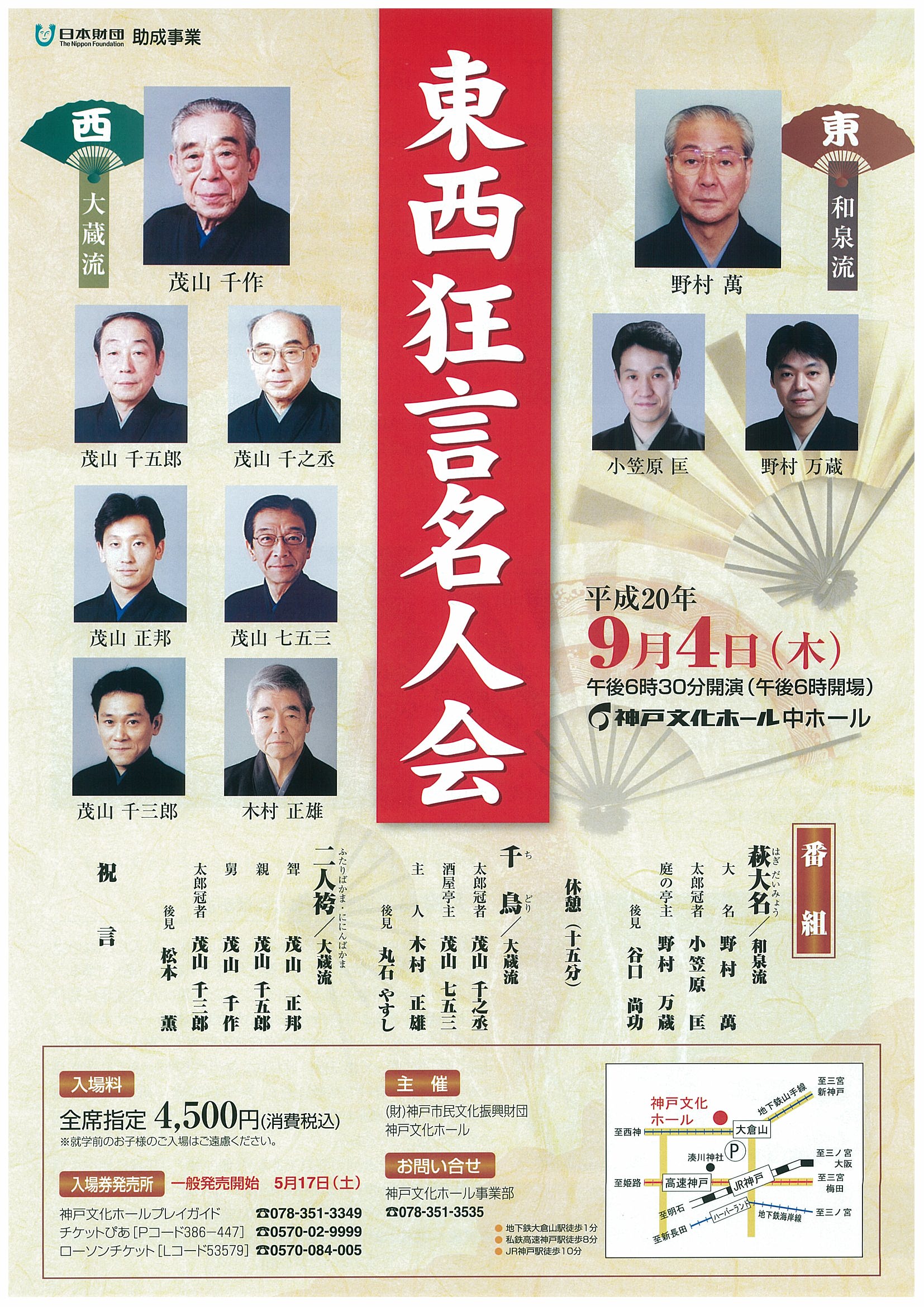 「東西狂言名人会」公演チラシ表面。(平成20年9月4日「東西狂言名人会」)
