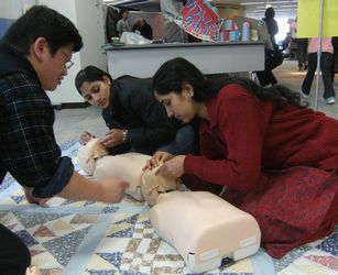 <div style="text-align: center;"></div>第3回 あの手この手つながっ手 に参加しました(報告) 参加者人数 おおよそ 6日 40名, 7日 60名 2日合計 100名 <div style="text-align: center;"></div>活動目的と内容 さいたま市消防局より 救命講習用 訓練人形(小児2体・乳児2体)を 借用、団体所有の成人1体、AEDトレーナ1台を利用してイベント内において、普段救命講習会などに参加しにくい市民(子育て中の両親や障がいを持った方・外国人滞在者など)に対して、興味を持っていただくと共に、救命行為の有効性などを理解し、今後消防署などで行われる普通救命講習などに繋げ、身体や精神、人種など様々な個性を持っている人、一人一人が市民の命を守り、尊重することを目的としておこないました。 実施当日は両日とも曇りや雨などあいにくの天候の中、同時開催の子育てフェア(6日のみ)では、小さな子を連れた親子などが…、7日ではより幅の広い市民が興味を持ち、体験を行っていきました。 両日とも当会の会員ほかサポートセンターが募集した、学生ボランティアも共にミニ講習に参加していただきました。 また、当会が実施予定をしている3月21日の普通救命講習の受講者をチラシを渡しながら募集・一部の方は申込みをいただきました。 |