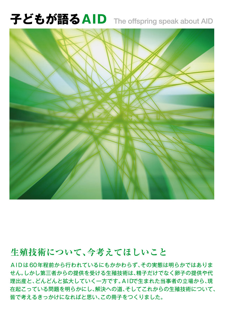 ー生殖技術について、今考えてほしいことー AIDの基本的情報やこの技術で生まれた人が抱える悩みについてまとめた問題啓発のためのパンフレット(A5判 12p) |
