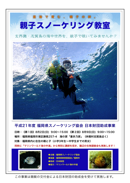 親子スノーケリング教室募集チラシ