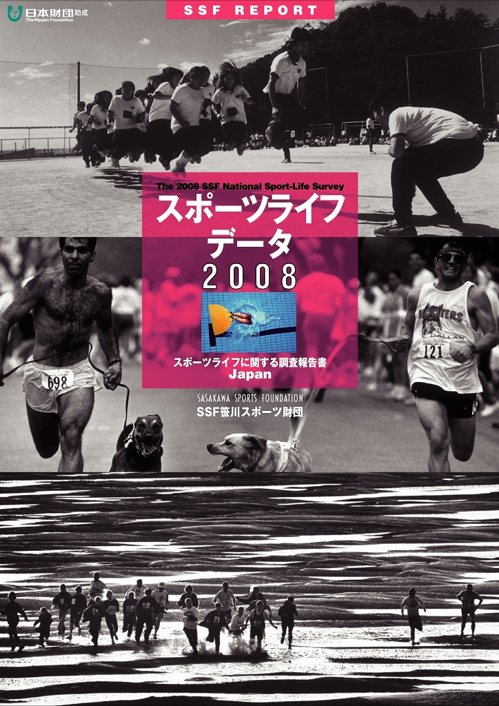 生涯スポーツ等の情報拠点整備 「スポーツライフに関する調査」 2.目的 わが国には、当財団設立まではスポーツ人口を量及び質の両面から捉えた全国調査が無く、国際比較も不可能であった。そこで当財団では、海外の調査方法を考慮した独自のスポーツライフに関する全国調査を平成4年(1992年)から2年ごと(過去8回)に実施しており、本調査を継続実施することで、スポーツ実施率の統計資料とすること、調査結果を広く発表しスポーツの実態を周知すること、また当財団の活動方針づくりの基礎資料とすること等を目的に刊行 3.内容 「実施頻度」「実施時間」「実施強度」の3つの観点から算出する「アクティブ・スポーツ人口」を中心に、変化の著しいスポーツ環境を取りまくタイムリーな問題も「トピックス」としてとりまとめ、調査結果を報告書(和文・英文)にまとめて国内外に公表するとともに、関連雑誌、学術学会等で報告・PRを実施した。 4.成果物 スポーツライフ・データ2008 |
