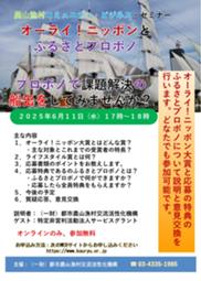 オーライ!ニッポン大賞と応募の特典のふるさとプロボノについて説明と意見交換を行います。どなたでも参加可能です。第20回オーライ!ニッポン大賞では、応募者の特典として、このふるさとプロボノと連携します。