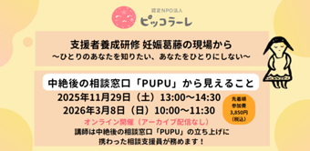 内容:講師は中絶後の相談窓口「PUPU」の立ち上げに携わった相談支援員が務めます!