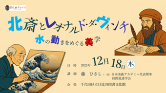 本講座では、世界が注目する「万能の絵師」葛飾北斎と、「万能の天才」レオナルド・ダ・ヴィンチが表現した「水の動き」に焦点を当てます。北斎が波や滝に込めた生命力と躍動感、そしてダ・ヴィンチが『水の理論』や手稿に記した科学的洞察と自然哲学――二人の作品に通底する「自然との共生」や「宇宙観」を読み解きながら、芸術と科学の垣根を超えた美学に迫ります。