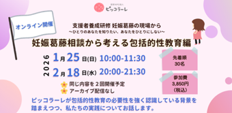 支援者養成研修 <妊娠葛藤相談から考える包括的性教育編>を開催します!!