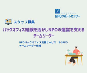 NPOサポートセンターのバックオフィス支援部門(B-SAPO事業)では、スタッフを募集しています。