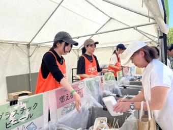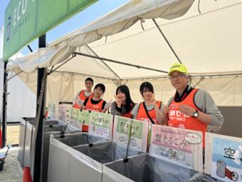 ごみ箱の前に立ち、ごみを捨てにきた来場者に対して分別を呼びかけます。ごみ箱の袋が一杯になったら袋を交換したり、一杯になった袋を集積所まで運んだりします。