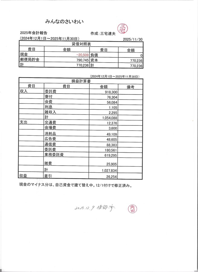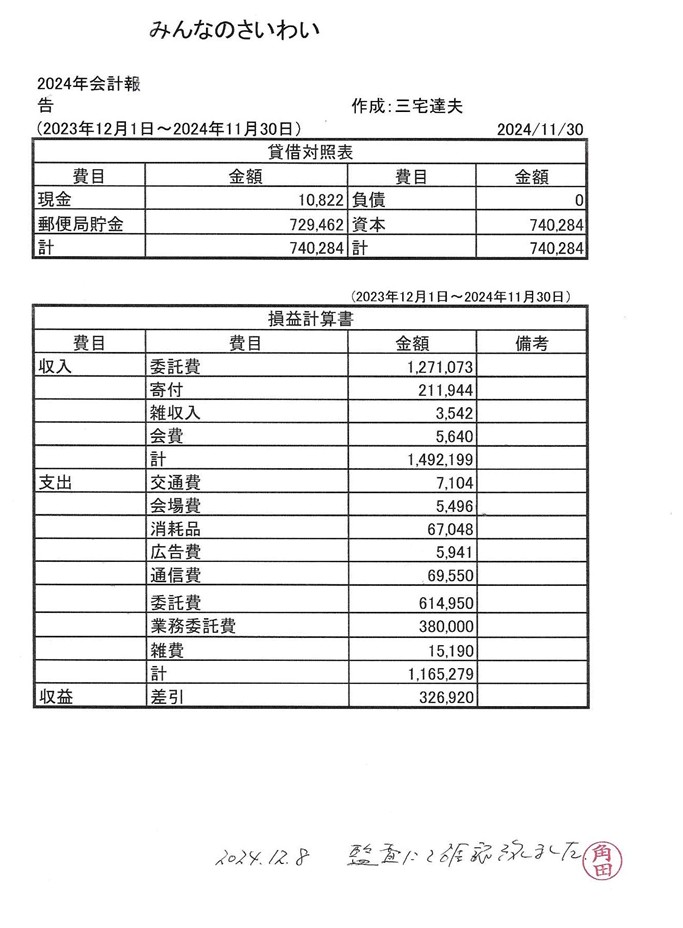 | 決算報告書 (活動計算書/収支計算書) |