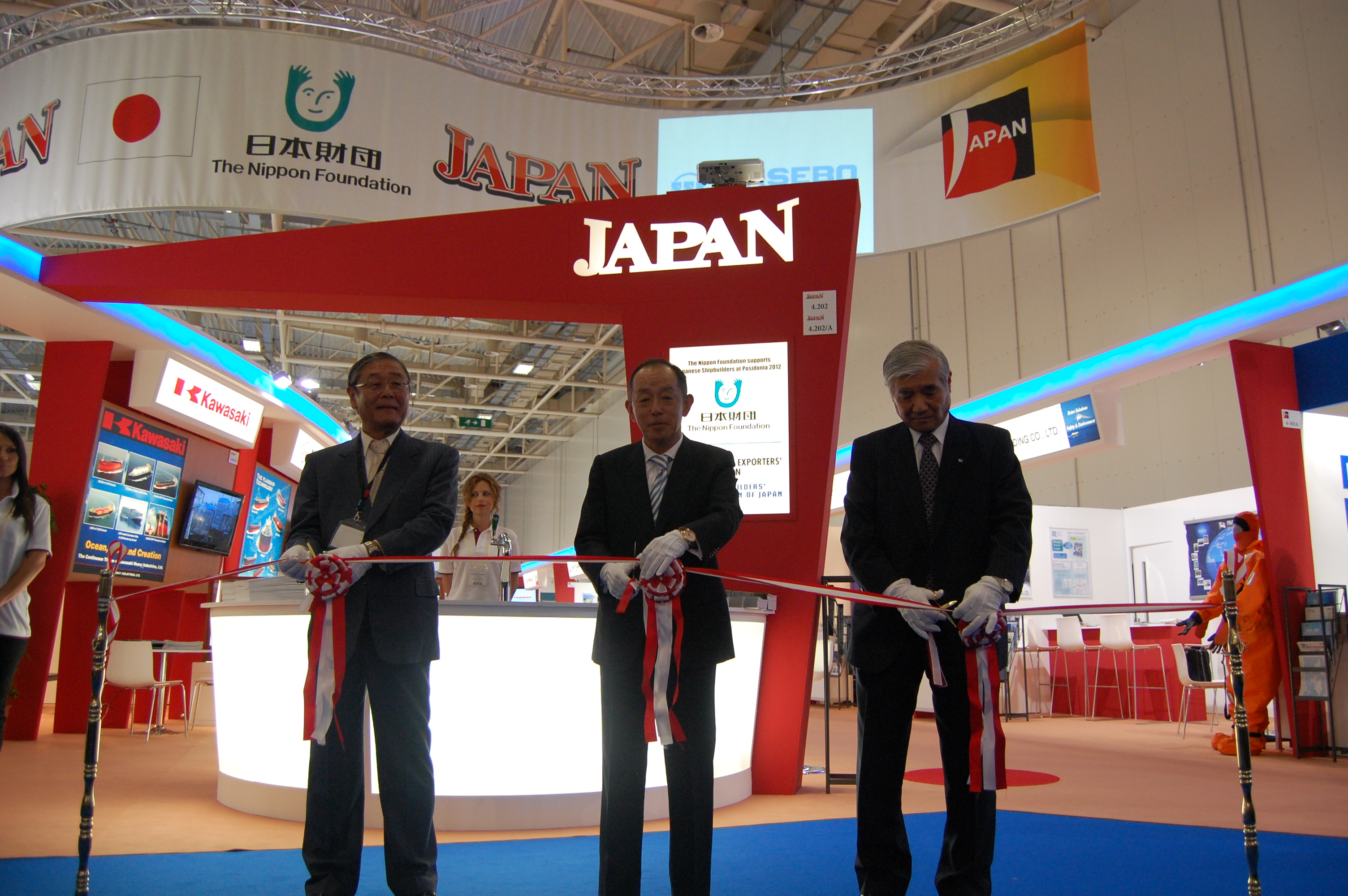 平成24年6月25日 日本船舶輸出組合 本組合は、去る6月4日(月)から8日(金)までギリシャのMetropolitan Expo Centreにおいて開催されたPosidonia 2012国際海事展(主催:Posidonia Exhibitions SA)に、日本造船工業会の協力のもと、日本財団の支援を得て参加した。 なお、本展示会は、前回までアテネ市の南に位置する旧空港跡地を再利用したHellenikon Exhibition Centreで開催されていたが、今般、2009年1月にオープンしたアテネ国際空港に隣接するMetropolitan Expo Centreに会場を移し開催されることとなった。 今回で23回目を迎えた同海事展には、87ヶ国、1,870社の参加があり、前回に引き続き盛況であった。 本組合の展示は、統一展示方式を基本としつつ各社がそれぞれのコーナーで積極的なPR活動を展開し、会場に参集した多数の欧米船主などに対し組合員各社が開発した新船型や高い燃費効率を掲げた次世代船舶等を中心に日本造船業の技術の優秀性を強くアピールするほか、彼我の交流の促進を図ることにより、今後の船舶輸出の促進に寄与するとともに、日本造船業のプレゼンスを高める上で大きな成果を挙げることができた。 また、6月6日(水)夕刻には、欧米の海運関係者、政府関係者等を招待し、パーティを開催した。 その実施経過は、下記の通りであった。 記 1.展示会への出展会社 ・87ヶ国(地域)から1,870社が出展した。 なお、そのうち日本、バハマ、ベリーズ、ブラジル、ケイマン諸島、中国、キプロス、デンマーク、韓国、リベリア、マルタ、オランダ、ノルウェー、パナマ、ルーマニア、シンガポール、スウェーデン、トルコ、英国、米国など20ヶ国がナショナル・スタンドを形成した。 2.入場者数 ・18,547人が入場した。 3.開場式等 ・6月4日(月)17:30より、日本スタンドにおいて、各社首脳等参集のもと、戸田博史在ギリシャ日本国大使、元山登雄本組合理事長及び藤本幸延(社)日本舶用工業会副会長のテープカットにより日本スタンド開場式が行われた。 ・同日18:00より、展示会場Hall 1に設置された特設会場においてPosidonia 2012のオフィシャル・オープニングが開催され、ギリシャのピクラメノス(Panagiotis Pikramenos)臨時首相により開会宣言が行われた。 ・引き続き同ピクラメノス首相、ストルナラス(Ioannis Stournaras)経済・競争政策・海運大臣、ヴェニアミス(Theodore Veniamis)ギリシャ船主協会会長をはじめとする来賓により会場巡覧が行われ、日本スタンドでは戸田大使、元山理事長、大森副理事長以下本組合首脳等が出迎え、展示物等の紹介を行った。 4.本組合の展示 ・メインエントランスに最も近いHall 4に243.60㎡を確保し、日本舶用工業会と共に全体として日本スタンドを形成した。 ・前回同様、本組合員企業12社が出展した。 ・各社コーナーにおいては、液晶モニターや写真パネルを活用し、各種船型の最新鋭模型を展示するなどにより、それぞれ自社の製品、技術、CI等についてPRを展開した。また、そのため参加各社から派遣されたアテンダントが揃いのポロシャツを着用し、All Japanをアピールして終日来場者に対し説明、紹介等を行った。 ・また、展示効果を一層高めるため、日本財団の支援により編集作成した参加各社のPRビデオを小間内部壁面に設置した液晶モニターにより放映した。 5.パーティ ・6月6日19:00から、Athenaeum Inter-Continental Hotelにおいて、戸田大使ご夫妻及び元山理事長夫妻の共催によりパーティを開催した。 ・同パーティには、ギリシャをはじめとする各国の有力船主、ブローカー、金融、報道、ギリシャ政府関係者、在ギリシャ各国大使館関係者等が夫人同伴で来場し、戸田大使ご夫妻、元山理事長夫妻、南副理事長及び蔵原副理事長がこれを迎えた。 ・来場者は約880名に及びギリシャ船主をはじめとする欧米海運界関係者等と緊密な交流を図るとの所期の目的を達成することができた。 以 上 |
