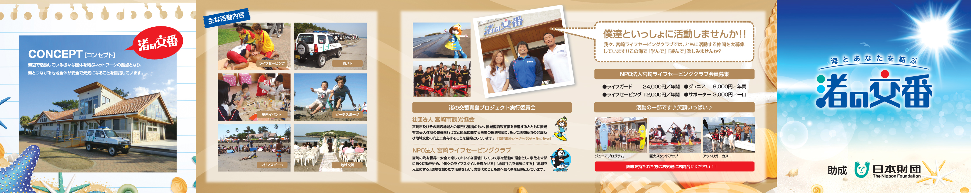 そのことが2011年度事業最大の目標である「平成24年度以降の自立した運営」につながりました。宮崎市が「渚の交番」を公の施設と認め、「宮崎市青島ビーチセンター」として条例を制定し、指定管理施設として平成24年度から運営していくことがきまり、事実上の「自立」へと成果を出すことができました。 指定管理の選定方法も、これまでの2年間の実績が認められ、社団法人宮崎市観光協会と当クラブでつくる「渚の交番青島プロジェクト実行委員会」が非公募にて指定管理申請とヒヤリングを経て、3月下旬に無事に指定管理者となることができました。指定管理料は約700万円。これらにより2名の専任スタッフと1名の臨時職員を雇用することができます。 このように目標を達成できた一番の要因は、何といっても「地域に必要とされた」ことに尽きます。多く、地域の方々からお声を頂戴しました。色々な意味で期待されているということも実感できました。 これらに答えるためにも、あらゆる事業に挑戦し、「次世代へ海を繋ぐ」ことに邁進していきたいと思います。 2011年度で具体的にいいますと、海岸を中心とした場所での深夜花火や迷惑行為について、宮崎市として条例を制定し、地域の方をはじめ、観光客の方が安心して過ごせる環境づくりの検討会議を始めました。地元新聞でも大きく取り上げられ、地元自治会をはじめ沢山の宮崎在住の方々から賛同のご意見を頂きました。「渚の交番」は海浜にある課題を横断的な繋がりで解決していくということが当初のイメージとしてあり、まさに、現状の条例制定への過程は、そのことを表現し、「渚の交番」という仕組みがもつ可能性を発揮できました。 これらから総合的に申しますと、本年度の事業目標は達成できたのではないかと思います。 今後、全国で展開されている「渚の交番プロジェクト」へ、その地域にあった最良な方法で自立した運営ができるよう、宮崎での「形」が少しでもお役に立てるよう視察の受入や様々な書類内容の共有といったことでまずは力になれればと思います。今回の報告書で添付しています「指定管理申請書」と「宮崎市青島ビーチセンター条例」は各地域の行政への提案として非常に役立つかと思います。 最後に、これからの宮崎「渚の交番」は、世界のリーディング団体として常に高みを意識しながら事業の展開をしていきます。ミクロなところでいくと「次世代へ繋ぐ」ということをより具現化するべく、更なる「雇用の創出」や「就労支援」が実現できるよう、費用対効果を意識した事業の進め方を行います。マクロなところでは、アジアが誇るまたは、「渚の交番」という日本初の新しい海洋文化を世界中の方々が視察にくるような、そんな文化にしていきます。 日本に新しい海浜文化を創出し、次世代のためにも「海に守られた日本から、海を守っていく日本」に変革していくそのようなきっかけづくりの場として、「渚の交番」は邁進し成長し続ける事業展開をいたします。 |