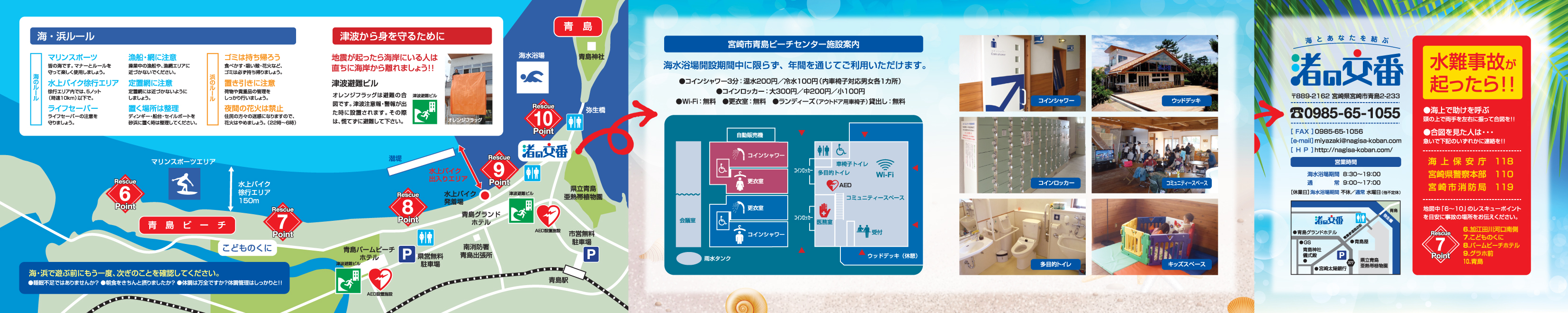 事故の無い、安全安心・きれいで楽しい環境を創出するため、地域との積極的な連携と各種マリンスポーツとの横断的な繋がりでの体制づくりを中心にこの一年間さまざまな事業展開をして参りました。「青パト防犯パトロール」や「青少年指導員パトロール」といった犯罪啓蒙活動が夏期における軽犯罪発生ゼロという快挙を成し遂げました。これまで、どうしても防ぐことができなかった「置き引き」や「盗撮」を発生させずに夏期海水浴場業務を終えたことは、「渚の交番」を中心にこの一年間継続的にパトロール活動を実施してきたことに尽きます。地域に根付き、地域になくてはならない存在に大きく近づいたことと思います。