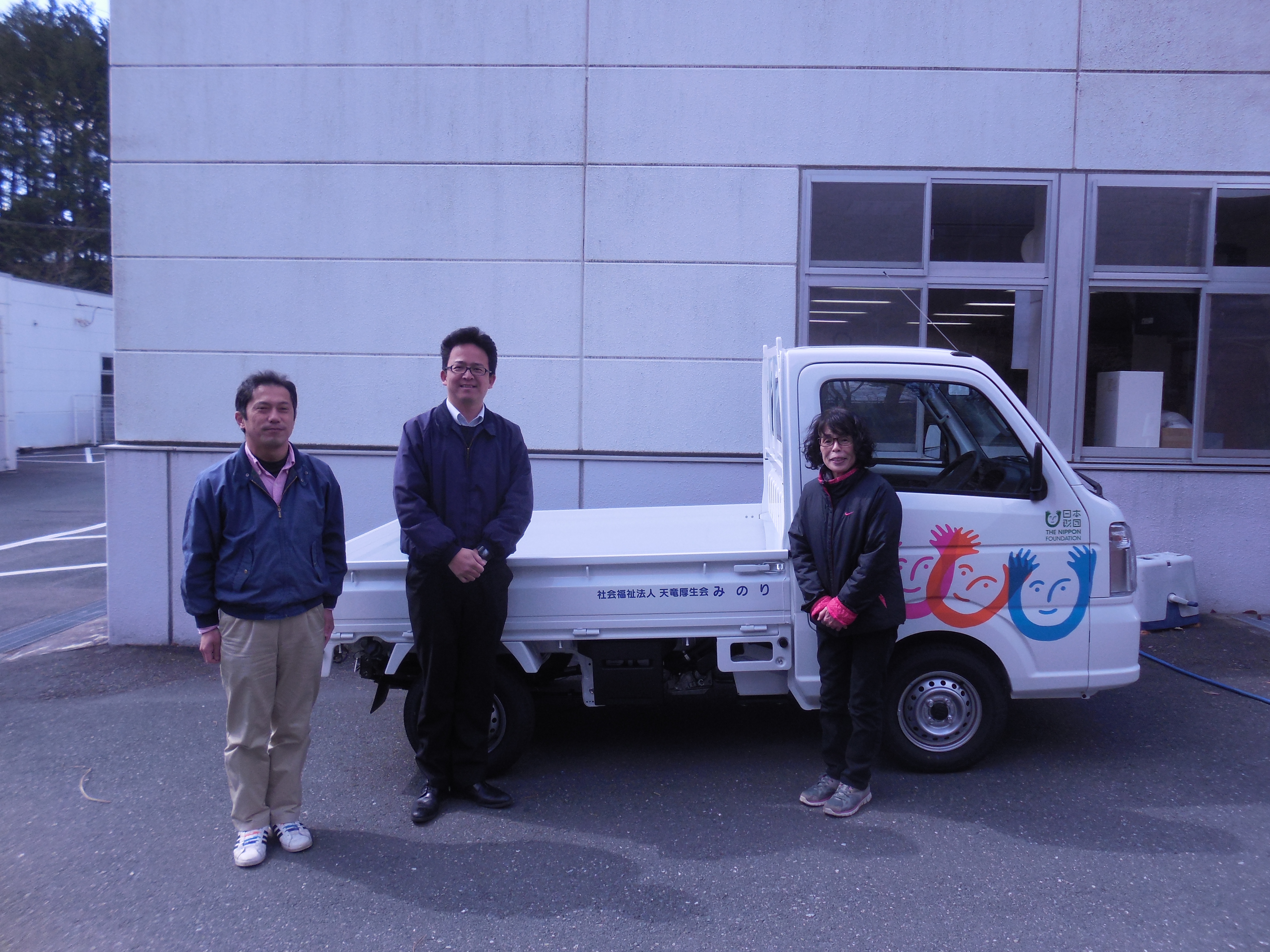 トラック(軽自動車)の整備 2.事業目標の達成状況 知的及び精神障がいを持つご利用者に就労の機会を提供し、且つ日常において必要な支援を行う当事業所は、平成26年3月より新規事業としてオリーブや野菜の栽培を開始しています。今まで農機具類の運搬や刈った草の持運びを行う車両を所有していなかったため、スムーズに作業を行えておりませんでした。本助成を受け新たに軽トラックを整備したことにより、ご利用者の負担の軽減及び短時間で多くの作業を提供することが可能となりました。 3.事業内容 車種 スズキ/キャリイ 4WD/ AT ガソリン車 使用施設 就労継続支援B型事業所 みのり 事業費総額 658,000円 助成金額 520,000円 |