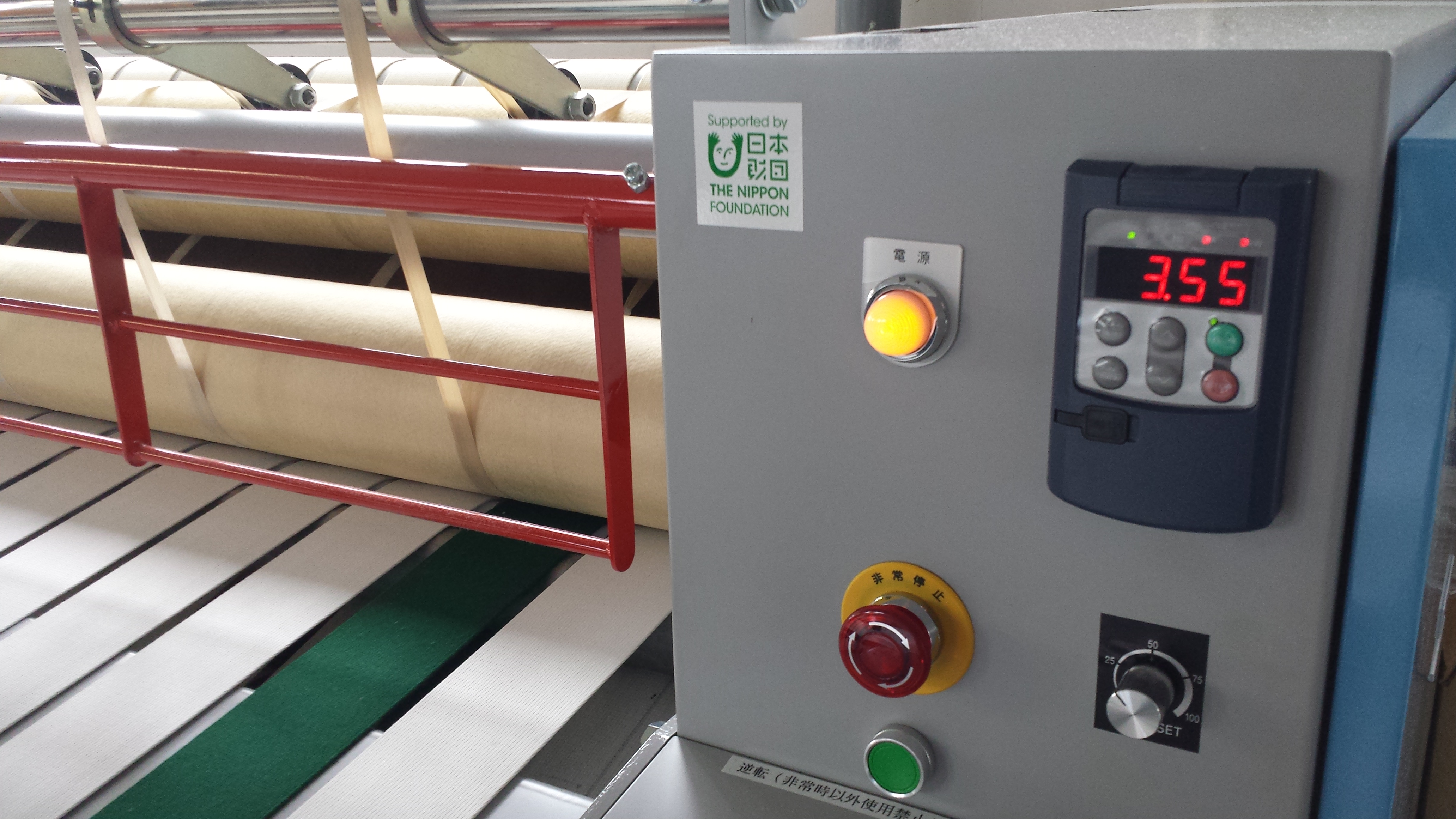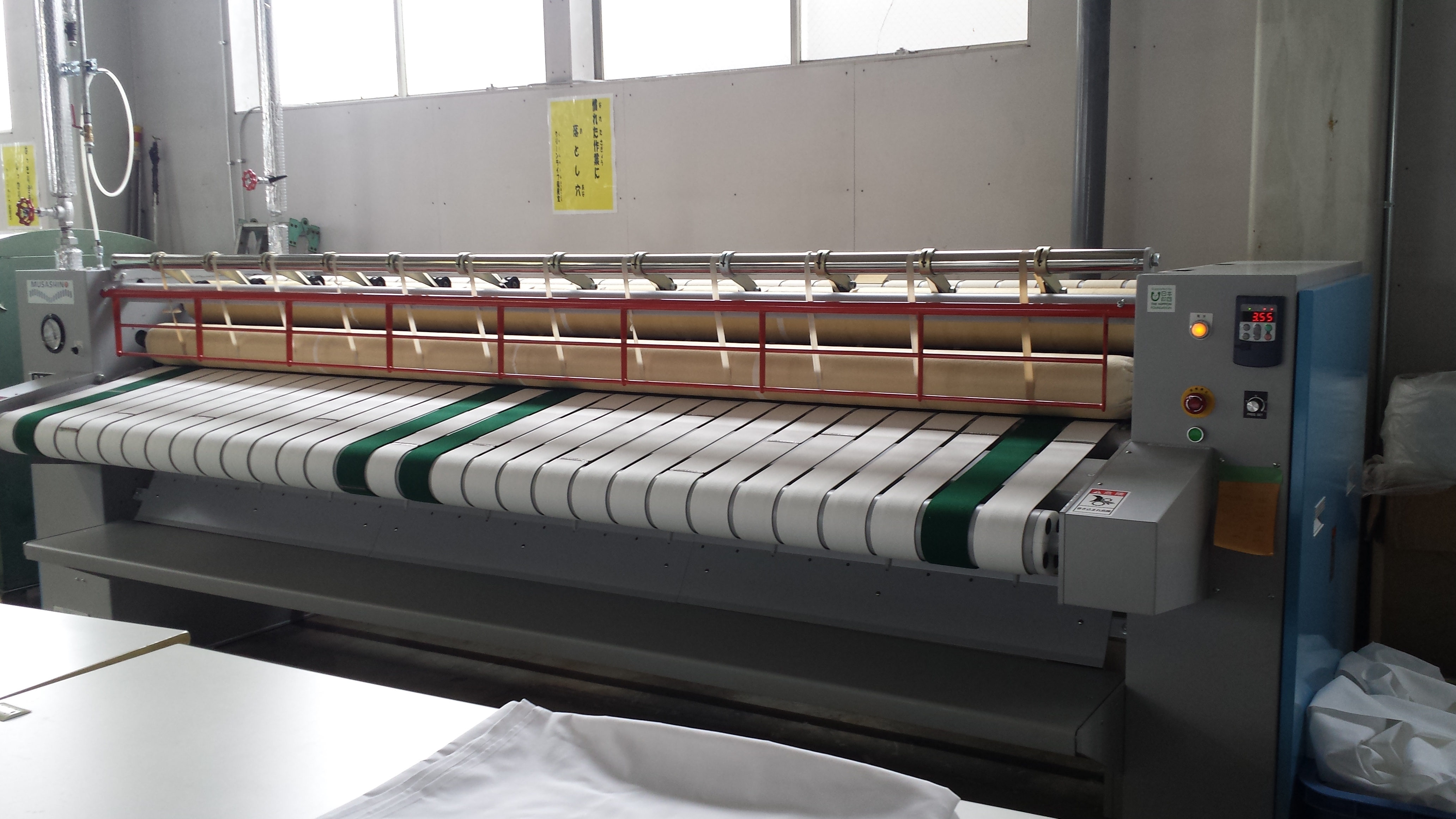 機器内容: ロールアイロナー 整備状況: 事業の拡充に伴う新規整備 施設名称: 就労継続支援A型事業 クリーンライフ陽風堂 整備場所: 北海道夕張郡長沼町銀座南1丁目1番8号 定 員: 10名 事業内容の拡充と就労する利用者様への支給賃金増等サービスの充実を目指し、日本財団様のご協力をいただき機器整備を行いました。2016年12月度においては、就労継続支援A型サービス利用者様7名に対し、平均で90,397円の賃金支給をさせていただきました。 |