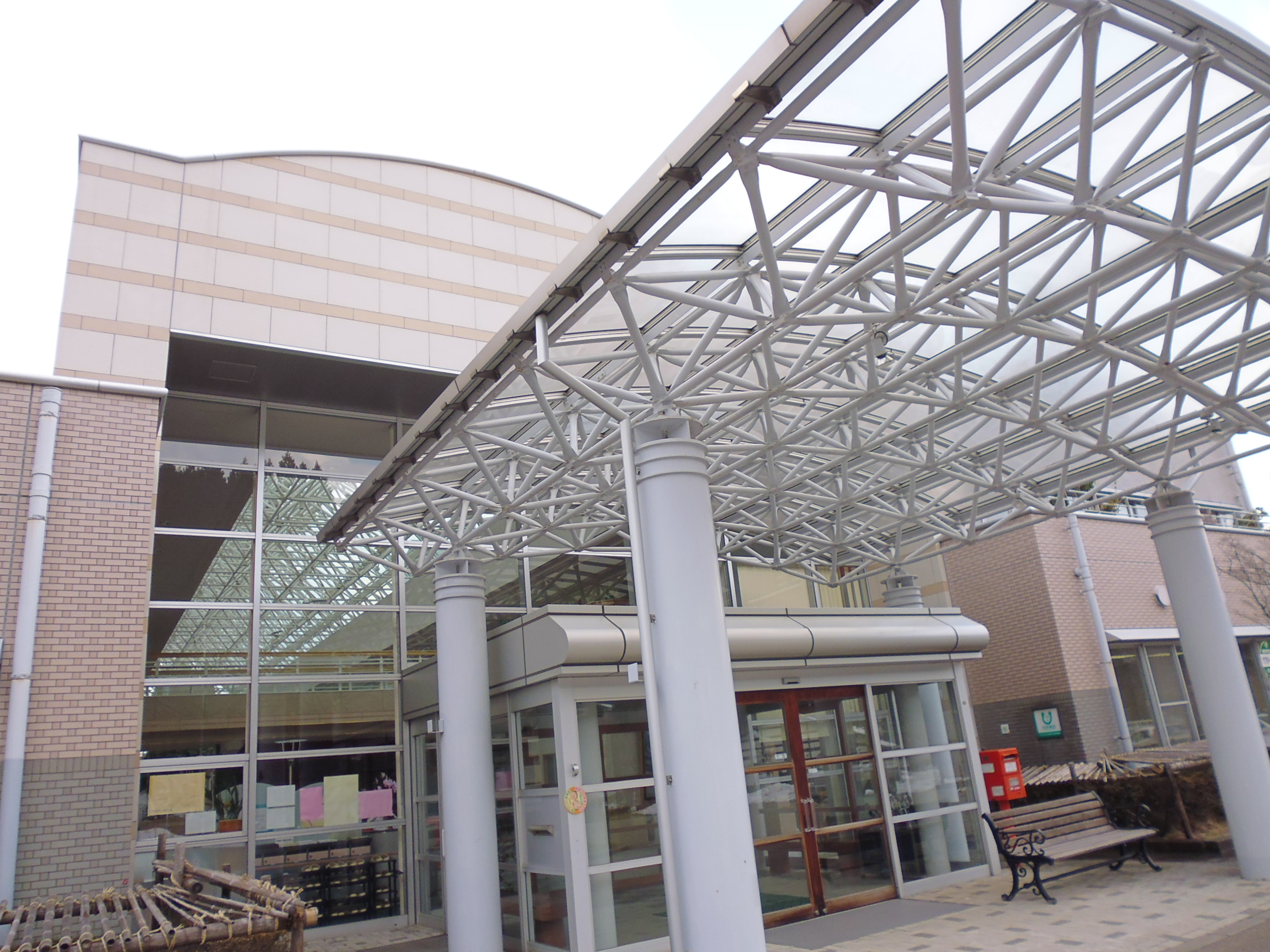 築23年を経過し老朽化した施設の正面外壁が剥がれ落ちてきているため、施設の顔である正面の外観を損なうことなく、また安全に出入りできるよう修復する。
