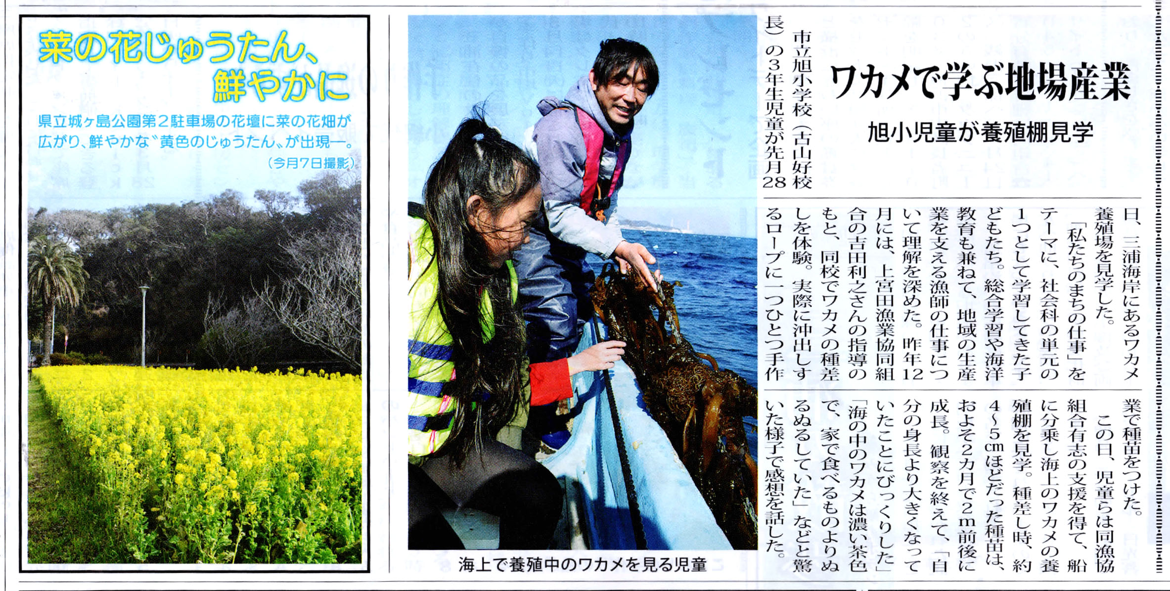 2016年度 新聞記事 旭小ワカメの授業について