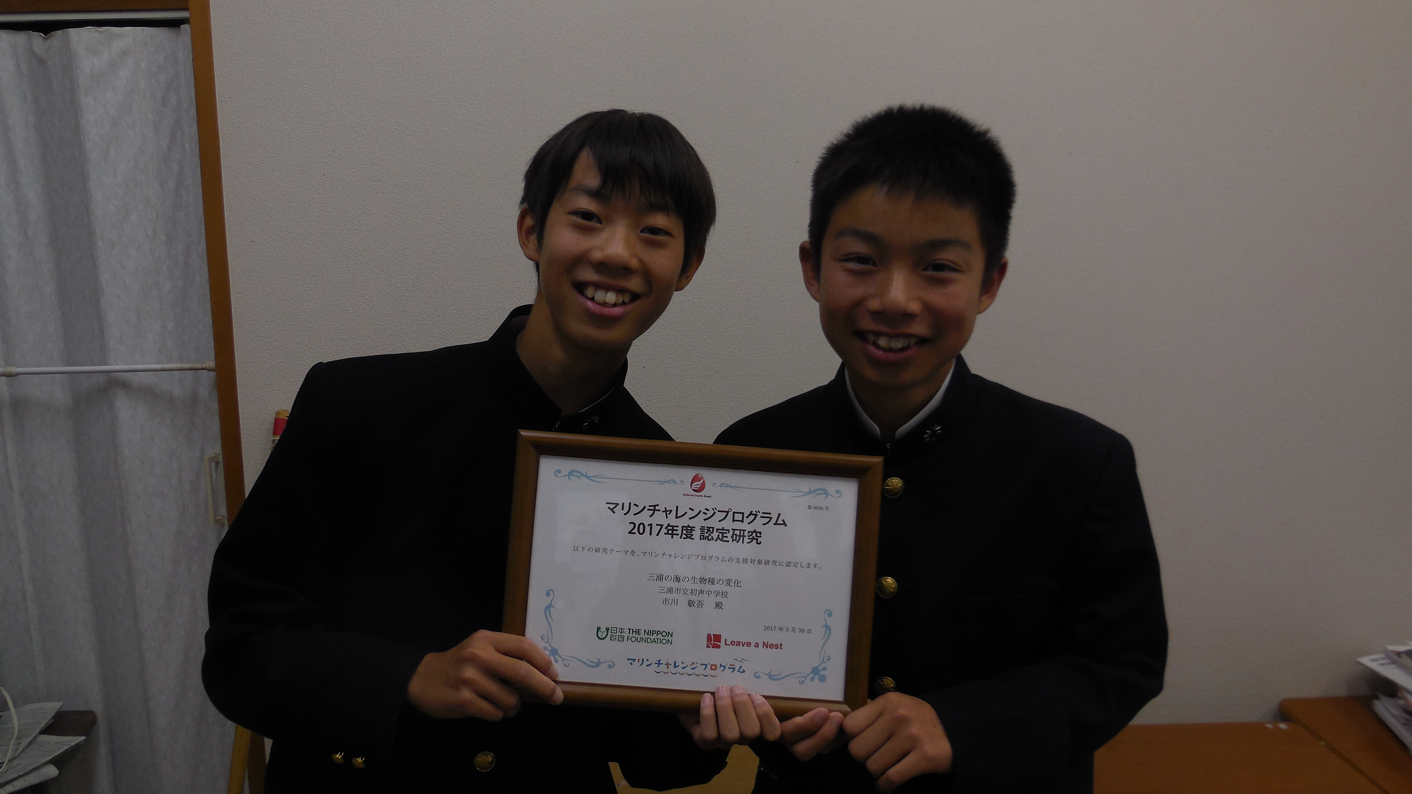 2017年度マリンチャレンジプログラム参加校の一つとして三浦市立初声中学校が選ばれた。