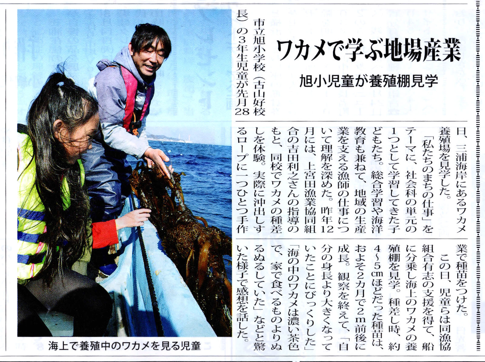 三浦市立旭小学校で取り組まれたワカメの授業の内容が新聞に掲載された。