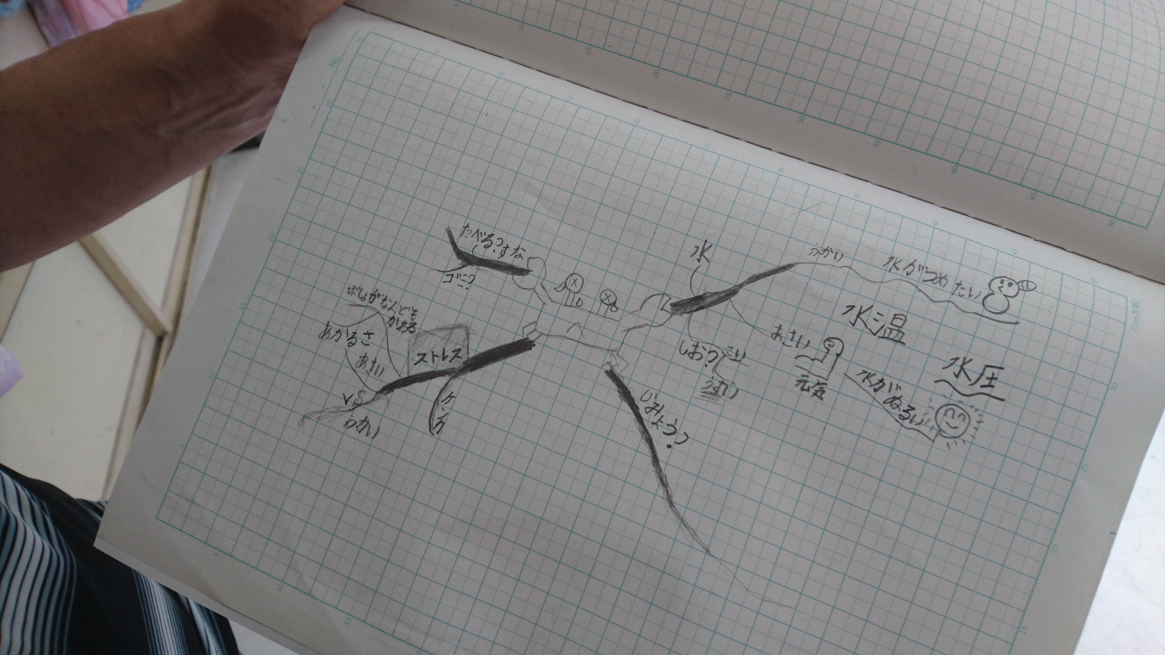 旭小の子どもがノートに書いた海の生き物飼育についての考察ノート。