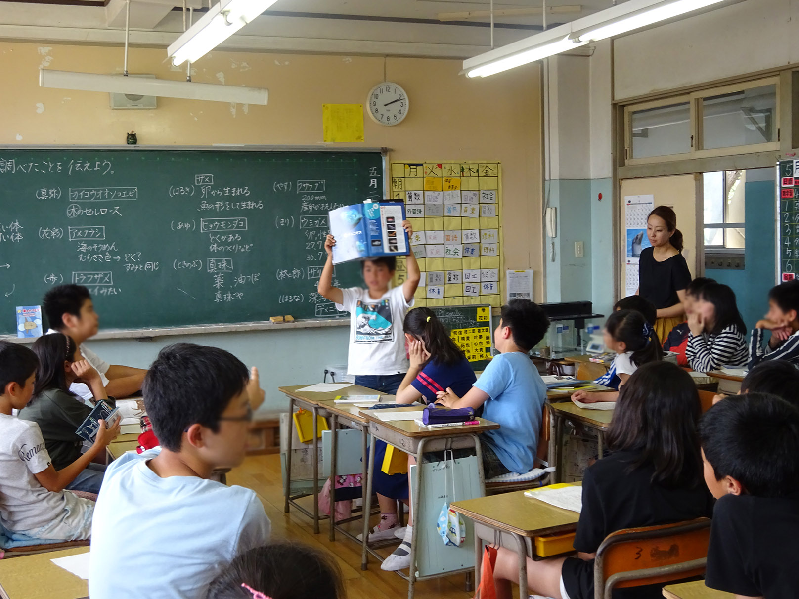 三浦市内小学校「三崎小学校」での好きな海の生き物調べの授業のようす。