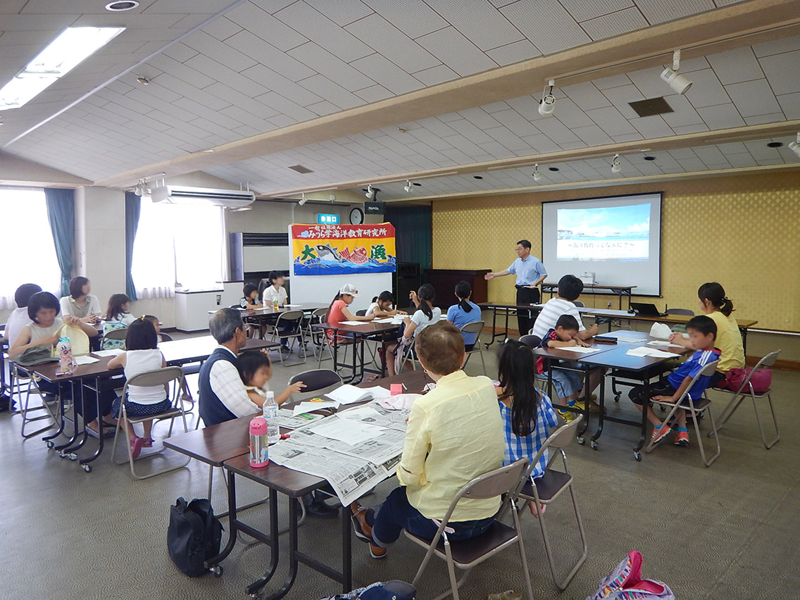 三浦市内 南下浦市民センターで行われた海洋教育講座のようす。