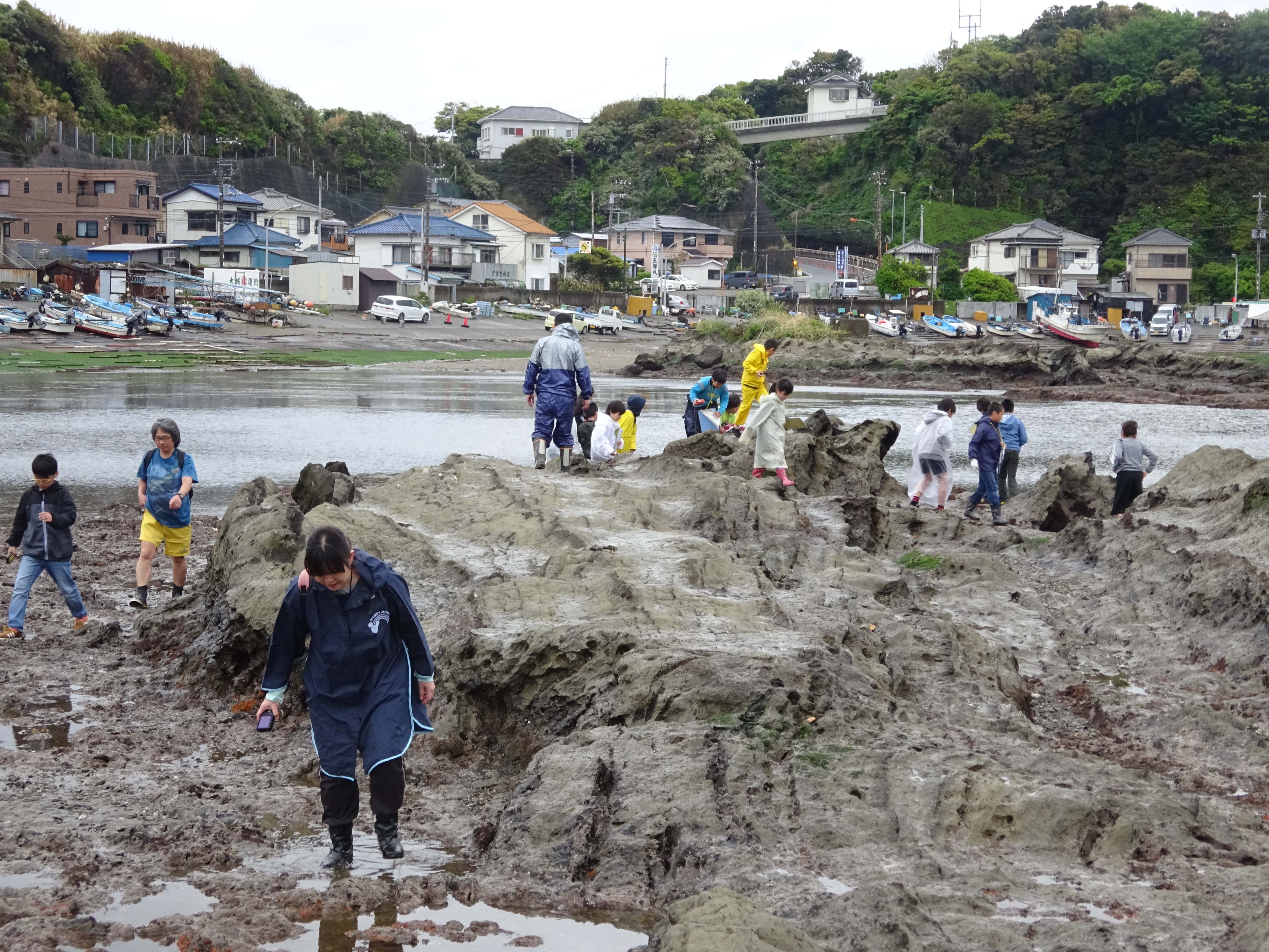 三浦市内小学校「上宮田小学校」で行われた 江奈湾での磯観察のようす。