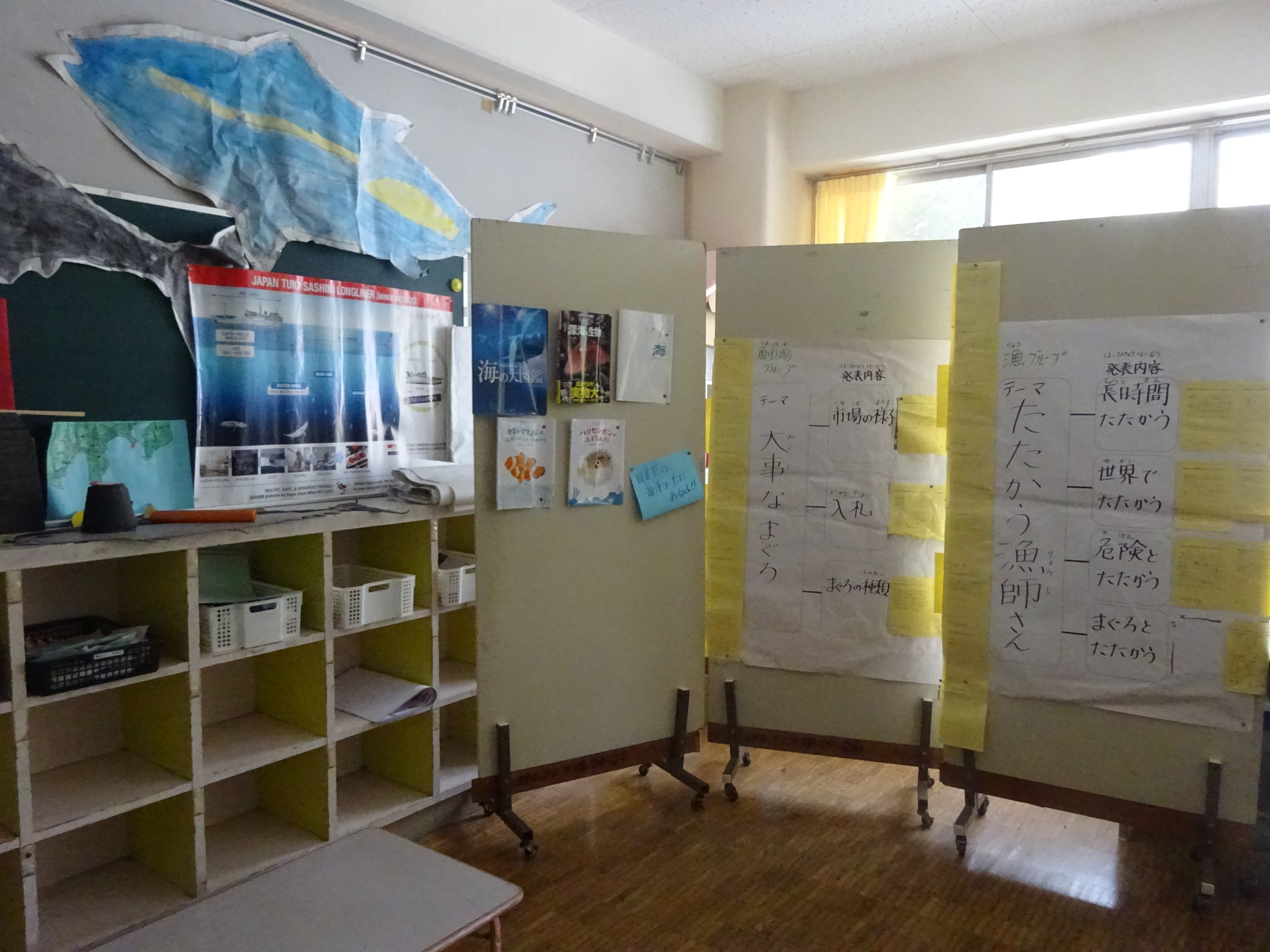 三浦市内小学校「岬陽小学校」に設置された海洋教室のようす。